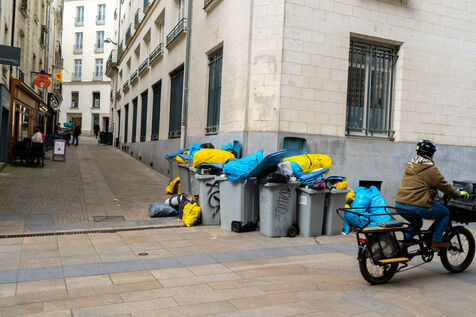 France, Nantes, March 15, 2023. Waste is piling up while the strike by the garbage collectors against the pension reform continues. The strike movement launched by the Parisian garbage collectors against the new pension reform extending their retirement age by two years is spreading in the big cities of the country as here in Nantes.
