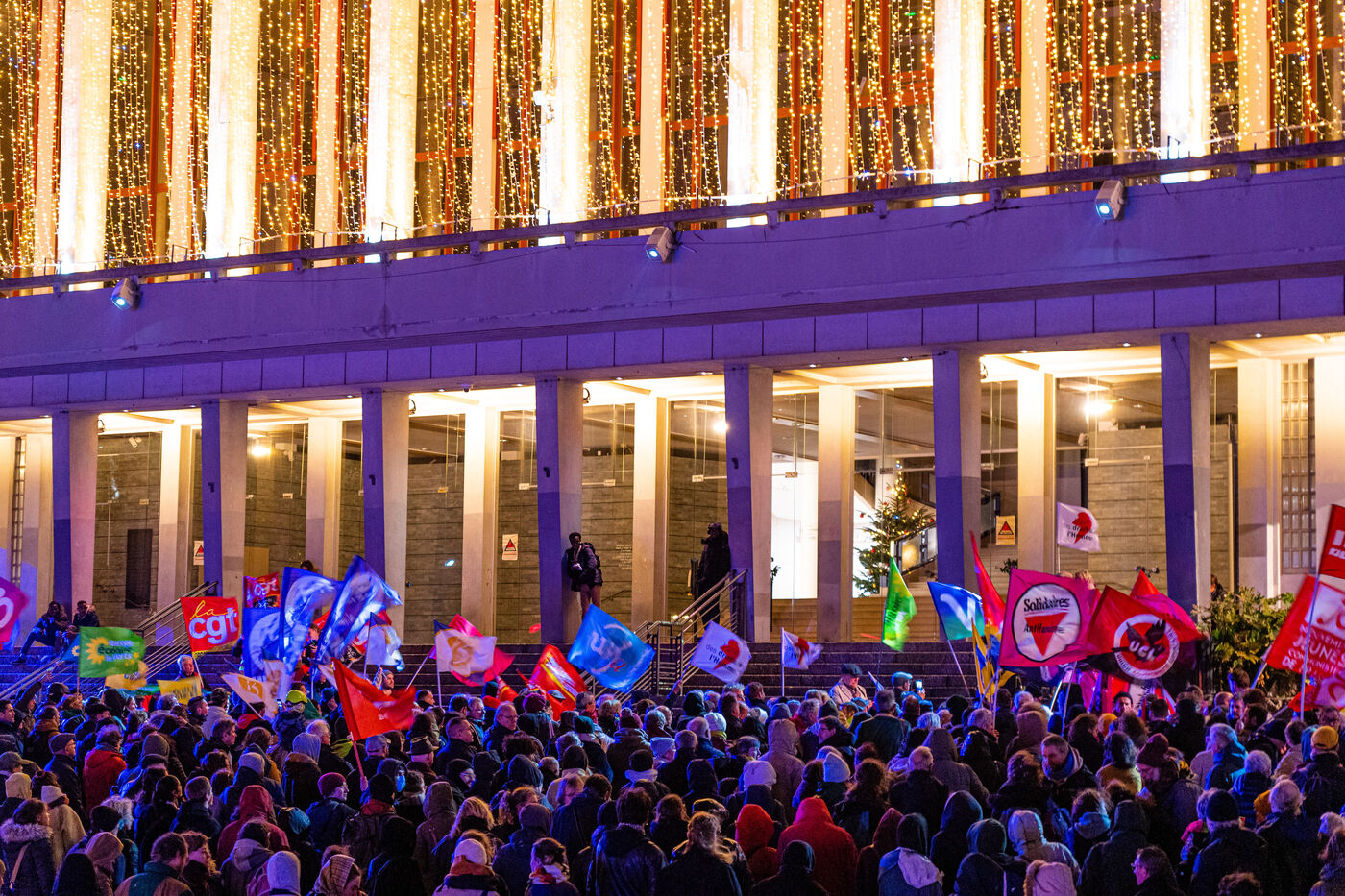 Le 21 décembre 2023, à Brest, quelques centaines de personnes se sont rassemblées et ont défilé dans les rues de Brest pour protester contre l'application de la loi immigration recemment votées à l'assemblée nationale.