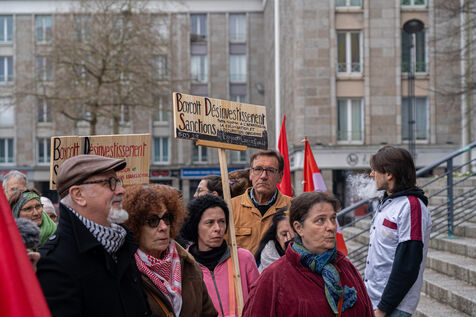 France, Brest, le 27 janvier 2024, se tenait aujourd'hui un rassemblement en soutien au peuple palestinien suite à la décision de la CIJ de contraindre Israël d'empêcher tout risque de génocide dans la bande de Gaza.