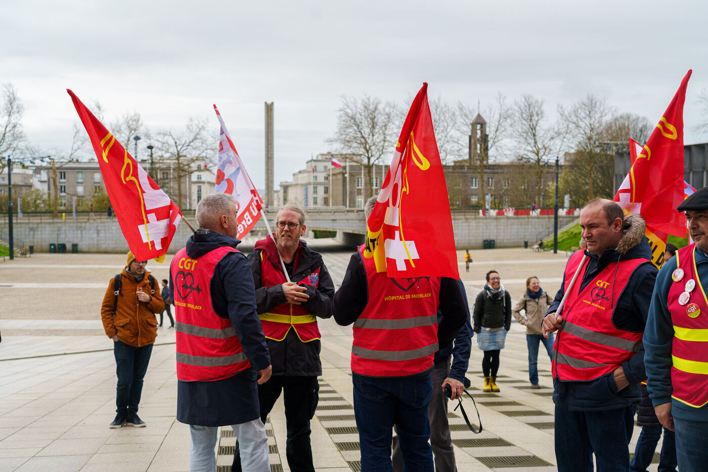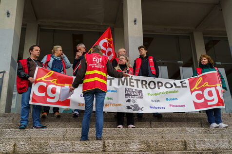 Manifestation de l'intersyndicale contre la précarisation de la fonction publique, à Brest, France, le 19 mars 2024.