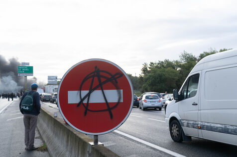 France, Rennes, September 10, 2025, several gatherings were organized on social networks to block the city. About 250 protesters gathered at 7 a.m. near the Henry-Fréville metro station to block the southern ring road of Rennes.
