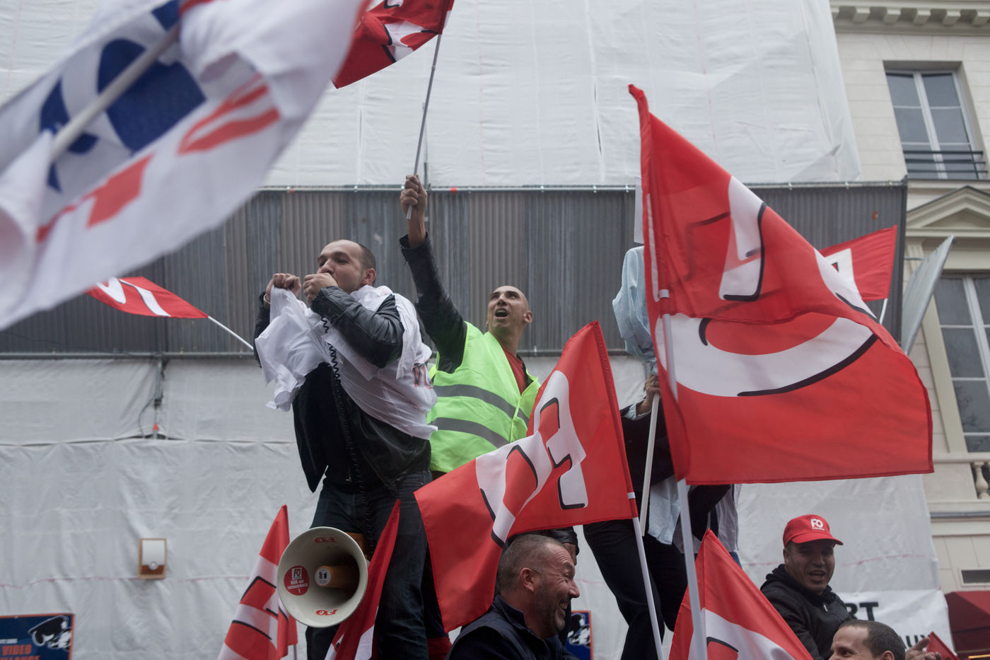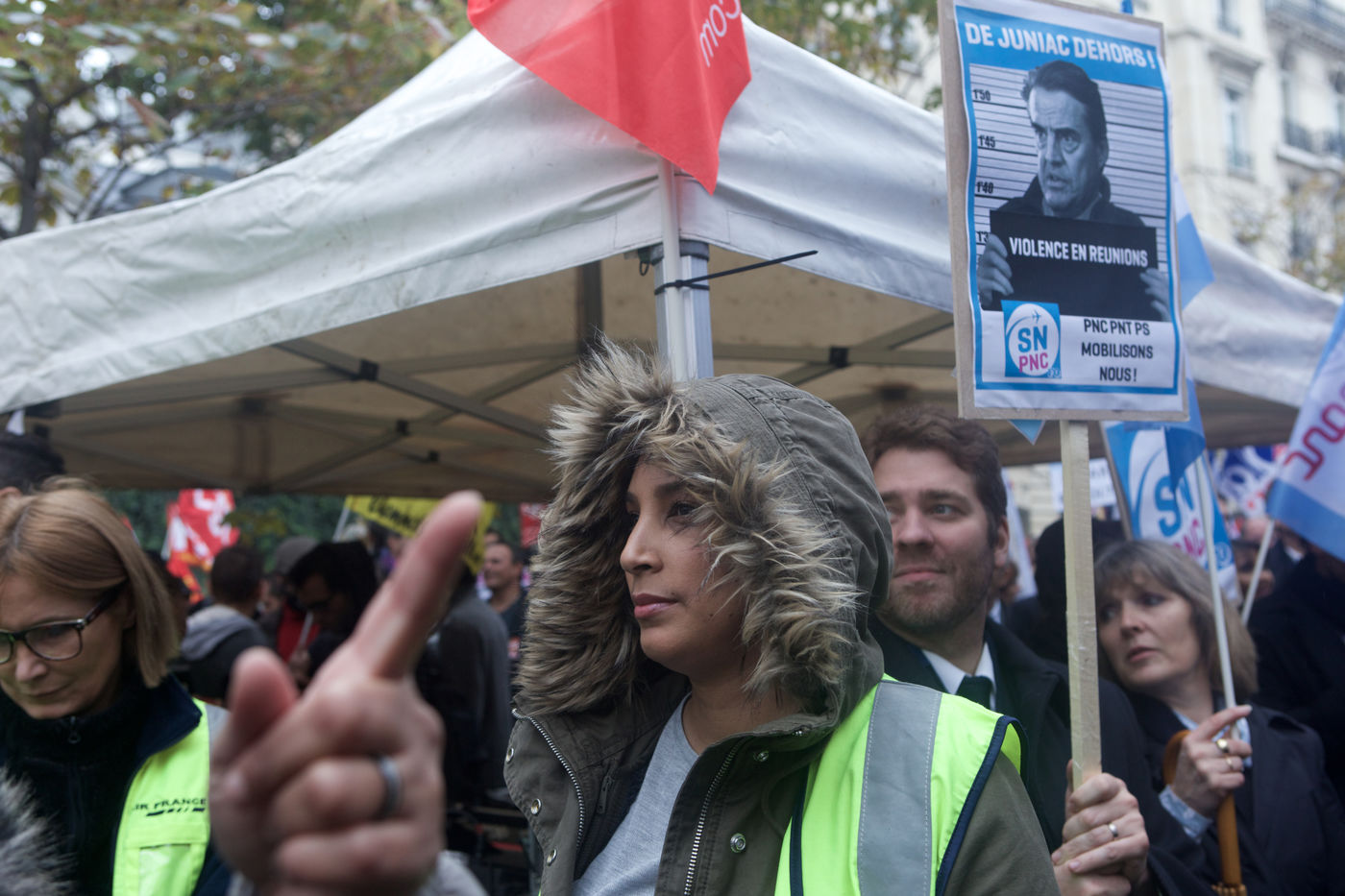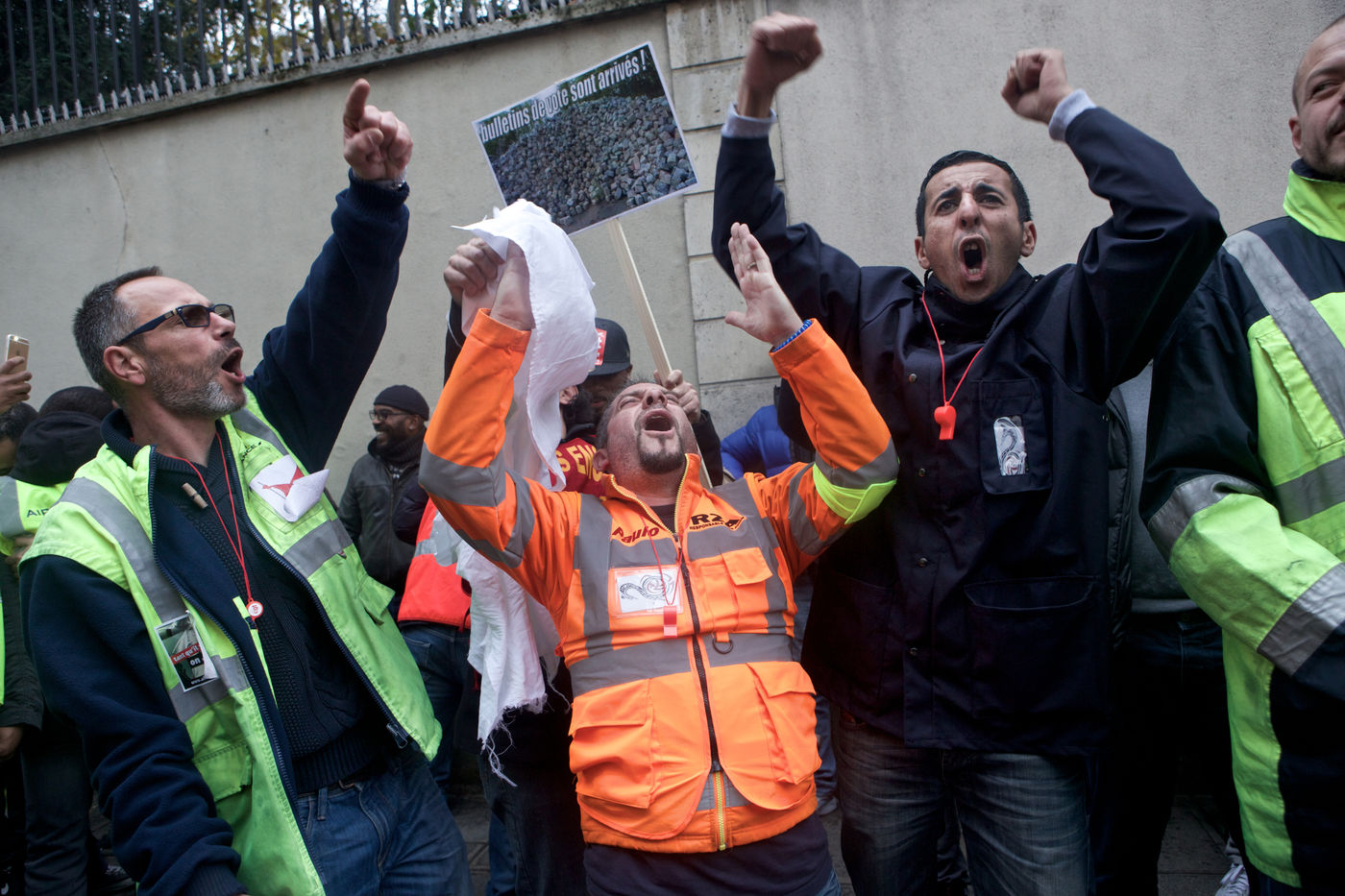 Rassemblement des salariés d'Air France pour protester contre les méthodes d?interpellations de salariés Air France suite aux événements du 5 octobre 2015. A proximité de l'Assemblée Nationale. Le 22 octobre 2015 a Paris.