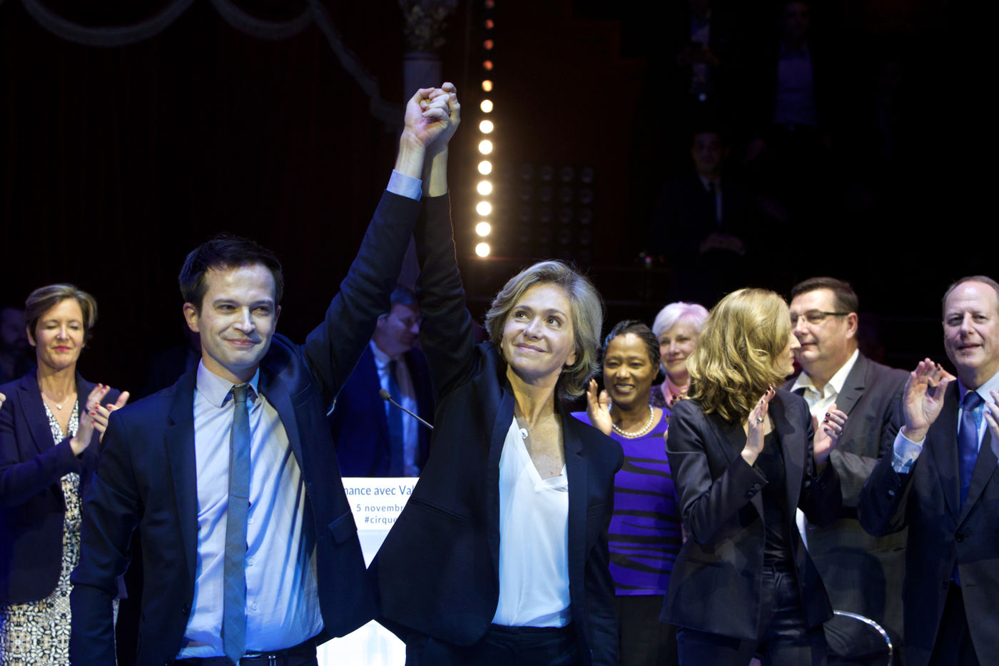 Meeting parisien de Valerie Pecresse à l'occasion des élections régionales les 6 et 13 décembre 2015. ?Cirque d'hiver le 5 novembre 2015