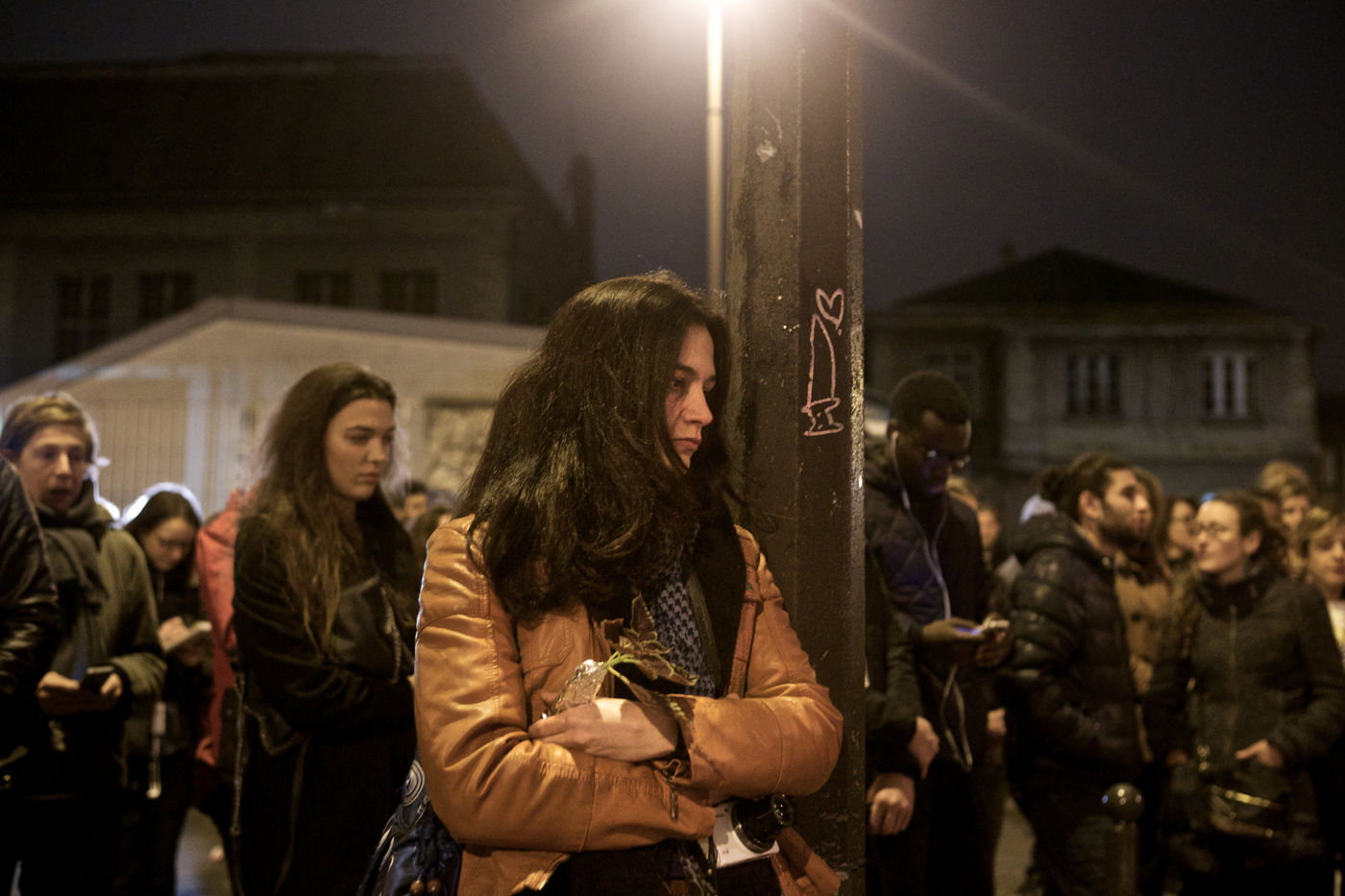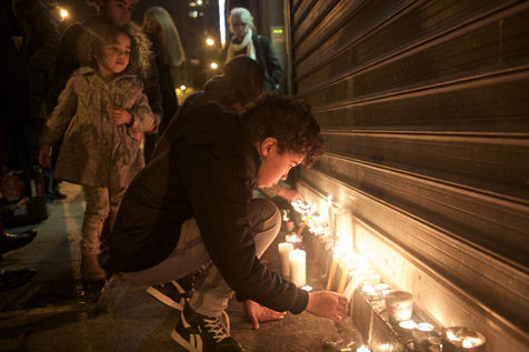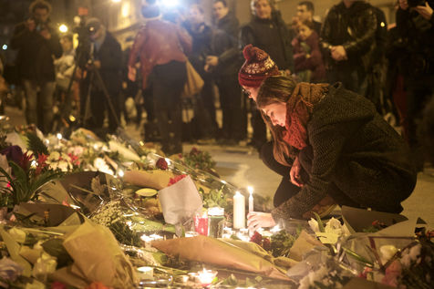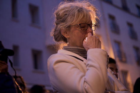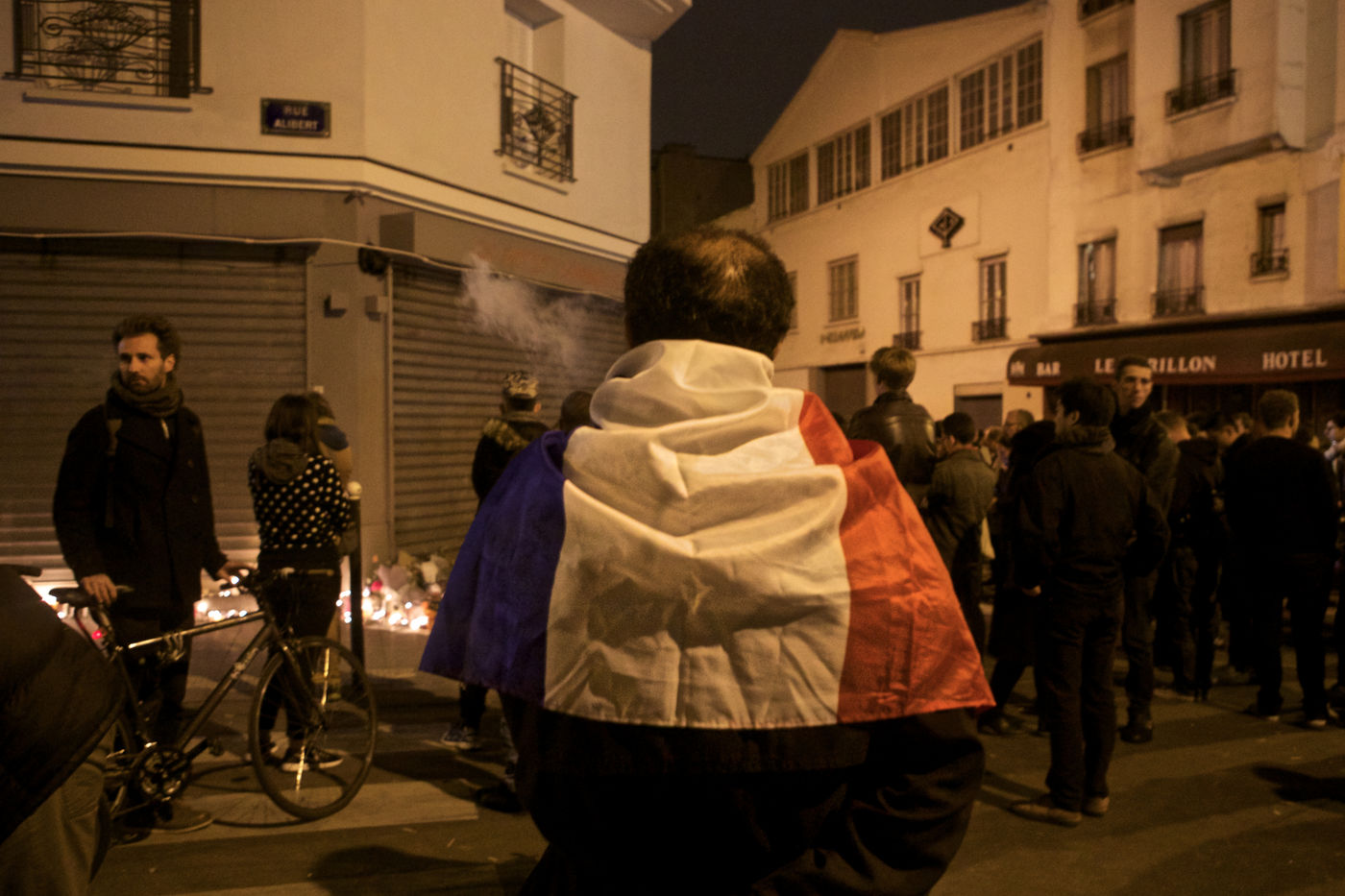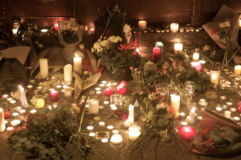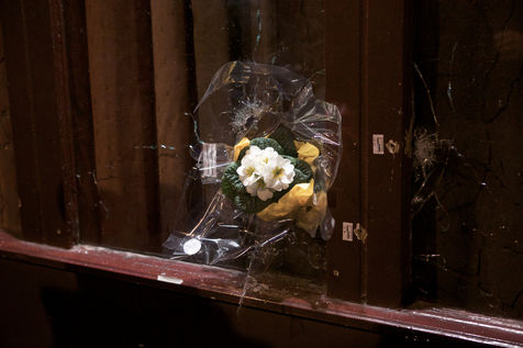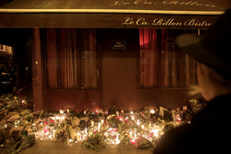 Attaques terroriste, le jour d'après. Receuillement devant les cafés Carillon et le Petit Cambodge 14 novembre 2015, Paris, France.