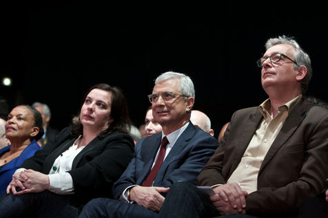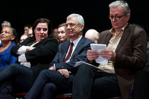 Meeting de Claude Bartolone le 9/12/15 au Palais des sports Robert-Oubron 5 Rue Pasteur Vallery Radot, 94000 Créteil a l'occasion de l'entre deux tours des élections régionales des 6 et 13 décembre 2015 intitulé : La gauche et les ecologistes rassemblés autour de Claude Bartolone, en présence d'Emmanuel Cosse, Pierre Laurent, Anne Hidalgo, Benoit Hamon, Christiane Taubira, Cecile Duflot et Jean-Christophe Cambadélis.
