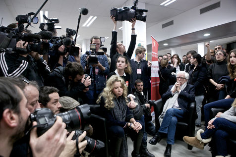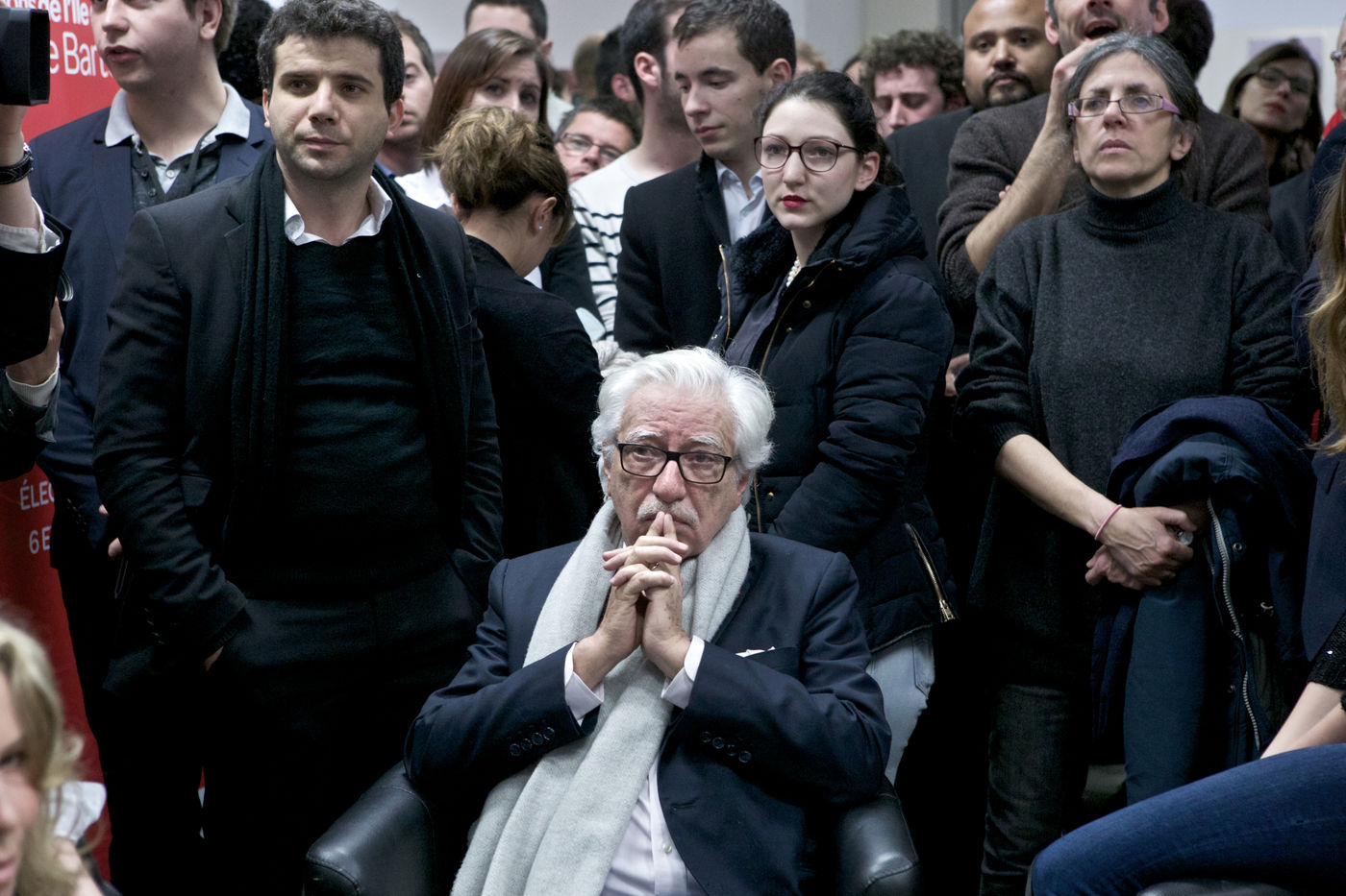 Defaite de Claude Bartolone en île de france au deuxième tour des regionales le soir des résultats au qg de campagne, 23 place de Catalogne 75014 Paris. Deception et tristesse chez les militants.