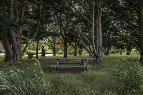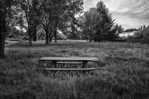 Parfois des paysages surréalistes sans l' intervention de l'homme. Cette petite base de loisirs de Parthenay, n'a pas vu une tondeuse à gazon ou une débroussailleuse depuis presque trois mois.