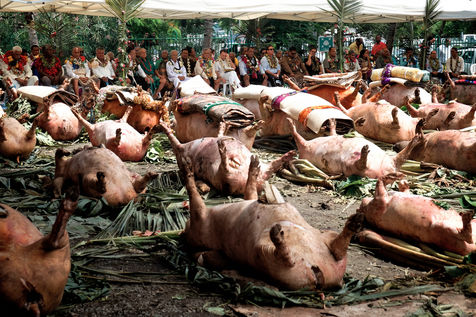 Futuna is a French island in the Pacific. It has about fifteen churches for 3600 inhabitants. And people were still building two new ones in March 2015, on a voluntary basis, with the financial contribution of the entire community. These construction sites of another age are revealed, as we go along, as a cement for this small oceania society.