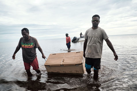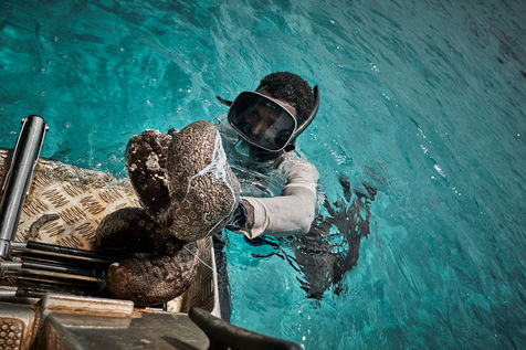 La réalité sur les îles Belep se révèle beaucoup moins faste que son trésor pourrait le laisser penser. Les pêcheurs locaux sont le tout premier maillon de la chaîne. Ils travaillent souvent dans des conditions rudimentaires, et tirent des revenus sans commune mesure avec le prix de vente finale des holothuries tirées de leur lagon. Tout l'enjeu aujourd'hui est de structurer la filière et de protéger la ressource. Les embarcations doivent pousser toujours plus loin pour ramener leur précieux butin...