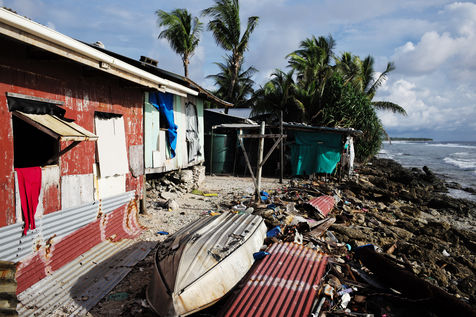 Les tempêtes et les inondations sont devenues de plus en plus intenses depuis une quinzaine d'années. Elles menacent déjà très concrètement les habitations de la capitale, Funafuti, qui mesure à peine plus de 400 mètres dans la partie la plus large. Cette bande de corail de 2,6 km carrés concentre près de 7000 habitants, les principales infrastructures, les services de santé et l'activité économique. Elle continue d'accueillir chaque année des migrants venus des autres îles de l'archipel.