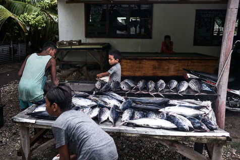 Global warming, its destructive storms and salt water floods undermine any prospect of development. While the state and international programs are building fragile breakwaters, fish are synonymous with survival for the people. On the one hand, coastal fishing is the only subsistence activity, and boats have to push ever further because of pollution and overfishing. On the other hand, the economy of the country is based on the sale of licenses to foreign vessels which hunt schools of tuna on the high seas. Ironically, this activity fuels gigantic canning factories and an international market which contributes itself. greenhouse effect and rising water levels.