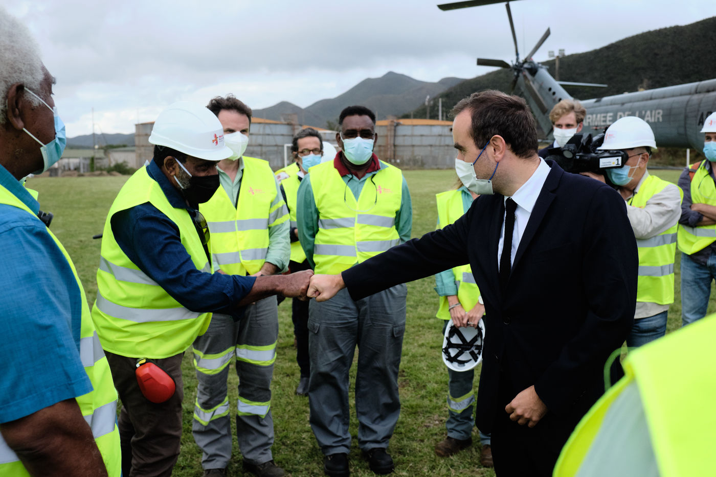New Caledonia, Prony, Thursday, October 14, 2021. French overseas Minister Sébastien Lecornu is welcomed to the Prony Resources facilities. The French State is contributing 725 million euros to the development of the metallurgical site in the form of loans and tax deductions.
