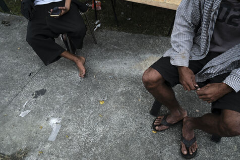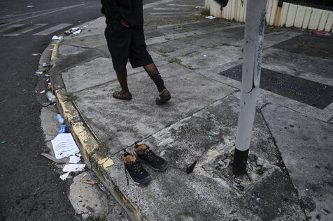 Dans le quartier de "Magenta Tours", ou l appaisement est palpable ces derniers jours, de jeunes independantistes ont remplace les barricades par des barrages filtrants et assurent la circulation, Noumea, Nouvelle Caledonie, mercredi 22 mai 2024. La revendication contre le degel du corps electoral se poursuit alors qu'Emmanuel Macron est attendu dans la nuit.