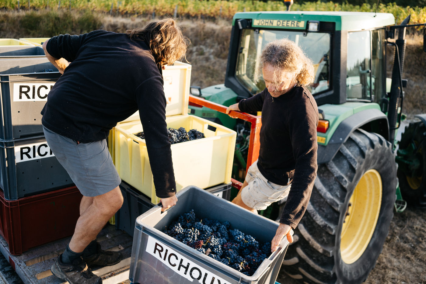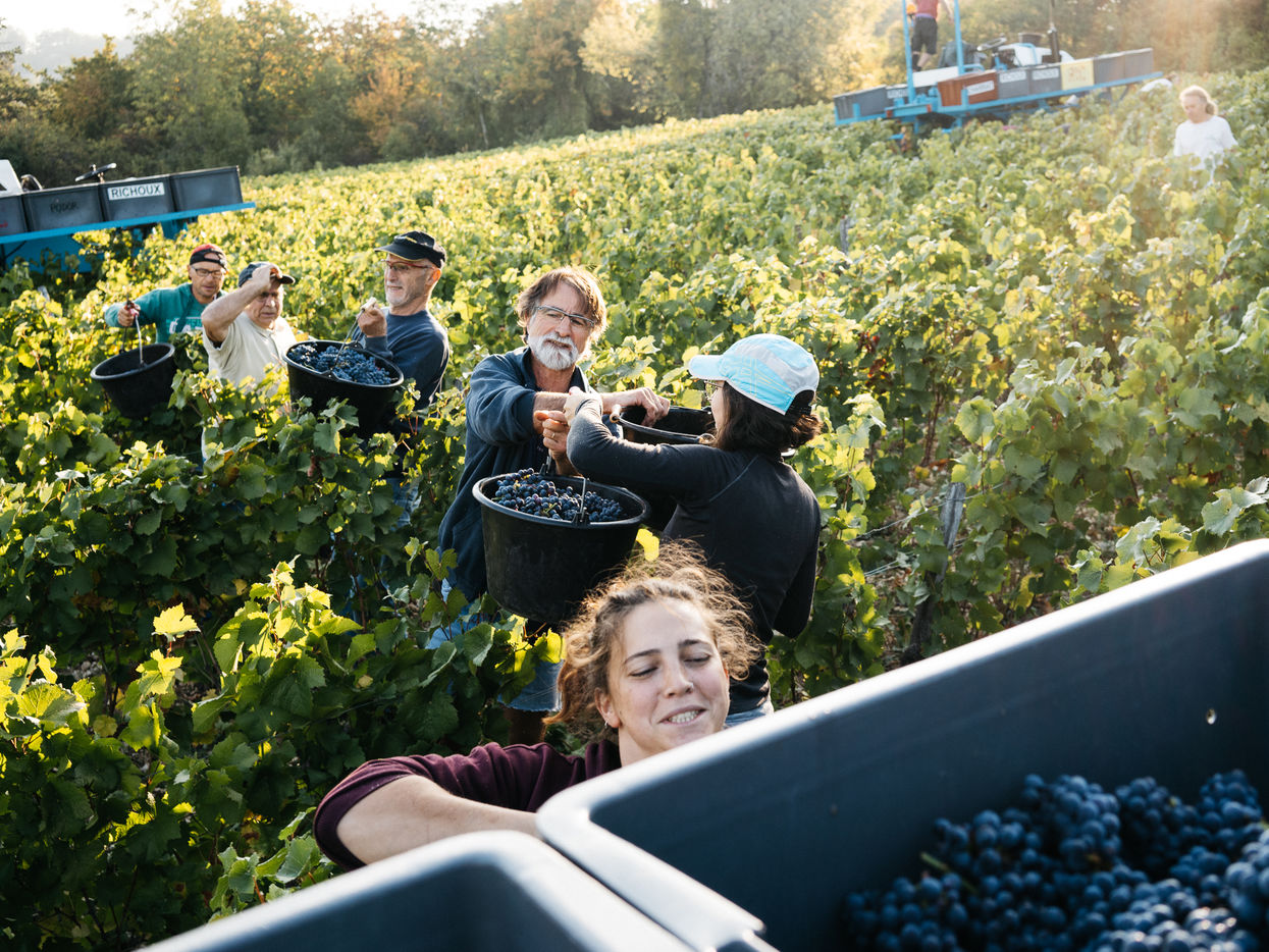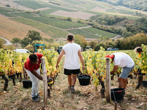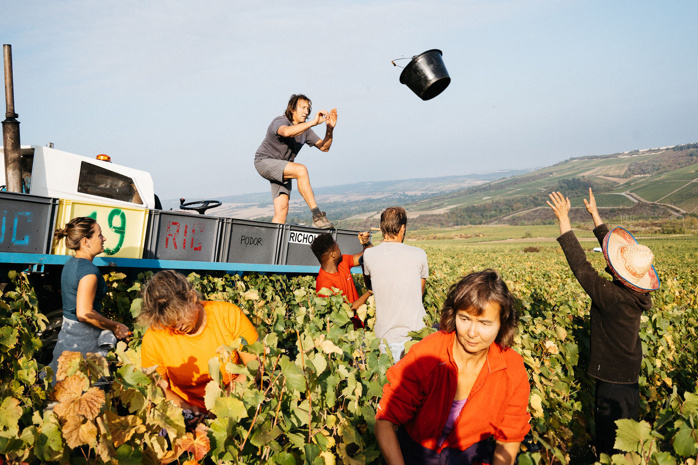In Irancy, Burgundy, the harvest is in full swing. We are in mid-September, and for two weeks, Thierry Richoux and his thirty grape harvesters will survey the vineyards daily to harvest his organic grapes.
