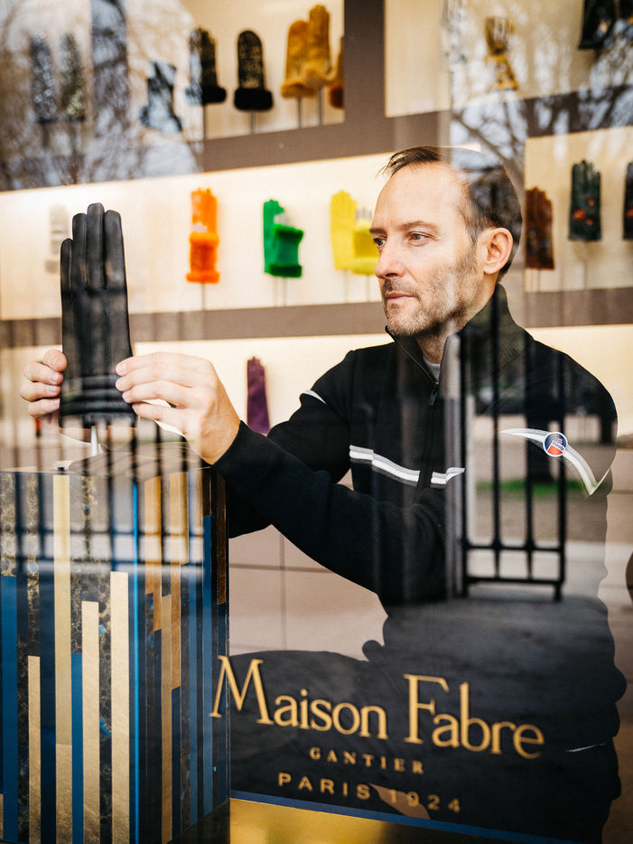 Olivier Fabre is the face of the fourth-generation of a family of glove makers from Millau (Occitanie region) that created Maison Fabre in 1924. A craftsmanship enthousiast, Olivier Fabre is an advocate for seamstresses who are the witness of French expertise.