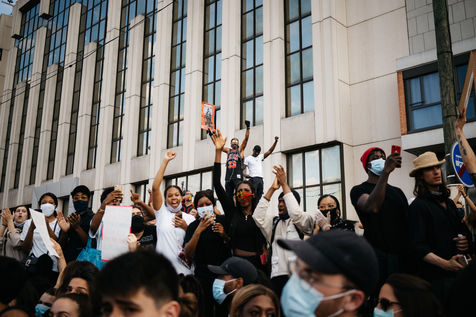 20 000 personnes rassemblées durant une manifestation dénonçant l'injustice, le racisme et les violences policières suite à l'appel d'Assa Traoré et le comité "Justice pour Adama", organisée devant le Palais de Justice à Paris le mardi 3 juin 2020 lors du #blackoutuesday. Ce rassemblement rend également hommage à George Floyd mort récemment aux Etats-Unis et toutes les victimes des violences policières.