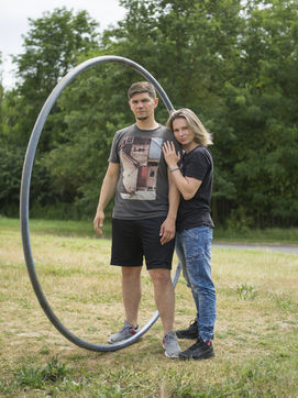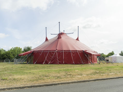 Angers, le mardi 24 mai 2022, parc d'attraction Terra Botanica où est installé le chapiteau du cirque Zirka!. En coordination et avec le soutien du Département de Maine et Loire, l?EPCC Anjou Théâtre a créé un cirque solidaire où jouent 11 artistes circassiens réfugiés Ukrainiens. Après une résidence de création d'un mois, il sera en représentation jusqu'à la fin de l'année 2022.
