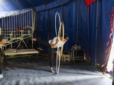 Angers, Tuesday, May 24, 2022, Terra Botanica amusement park where the Zirka! circus tent is installed. In coordination and with the support of the Department of Maine et Loire, the EPCC Anjou Théâtre has created a circus in solidarity with 11 Ukrainian refugee circus artists. After a one-month creation residency, it will be performing until the end of 2022.