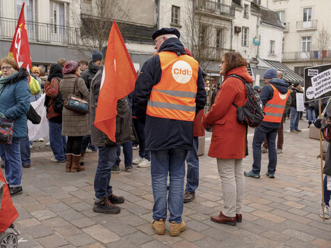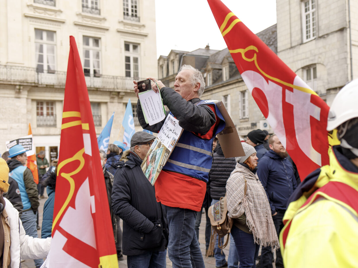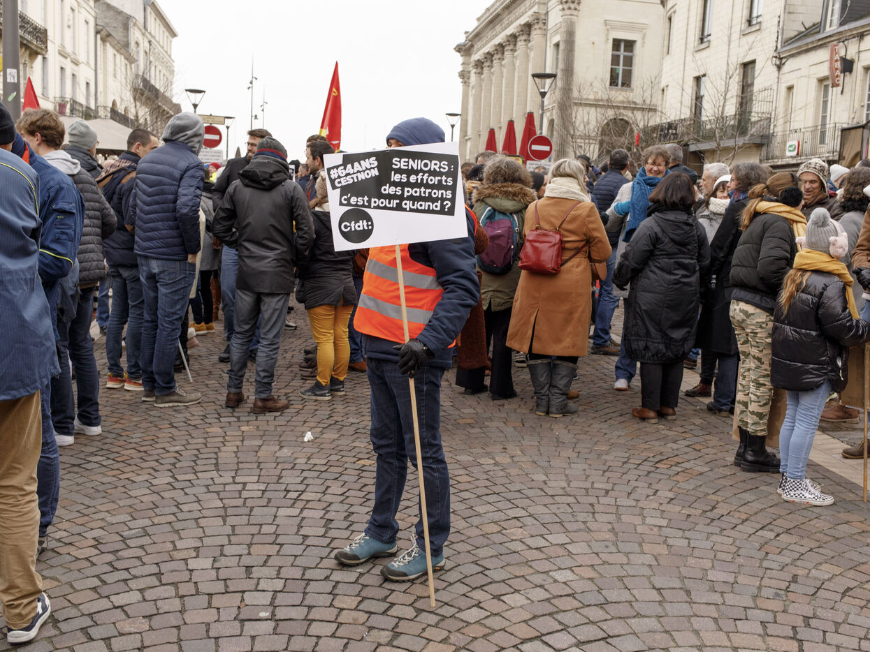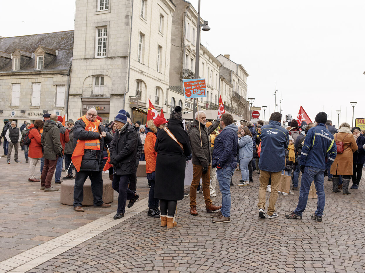 Premier jour de mobilisation contre la réforme des retraites, manifestation à Saumur, Maine-et-Loire, petite ville de 26000 habitants.