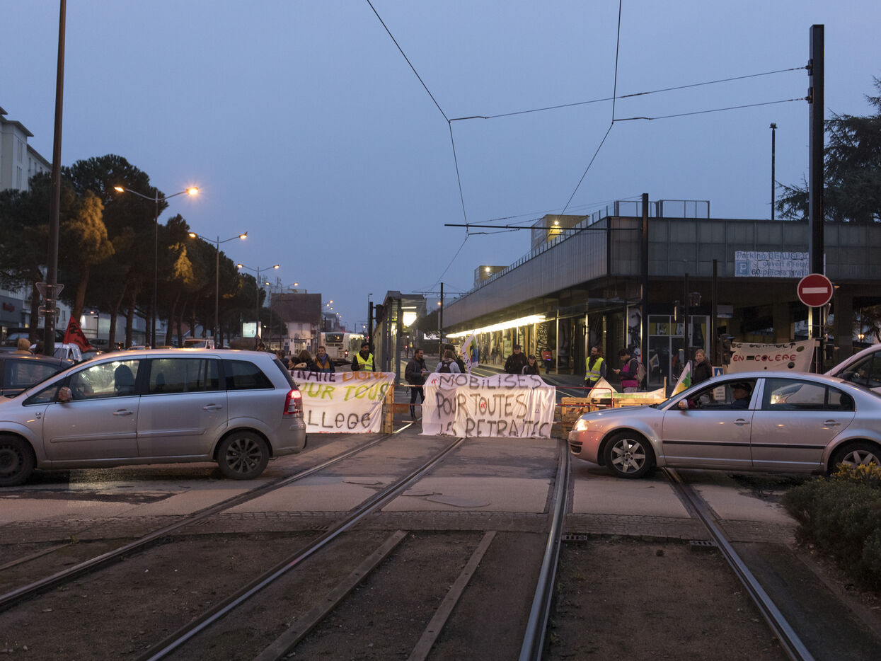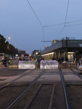 Nantes, mardi 21 mars 2023, dans le cadre de lma mobilisation contre la réforme des retraites, opération ville morte à Nantes. Blocages en centre ville par les personnels de l'éducation nationale, blocage de la rocade par les étudiants, réunion intersyndicale.