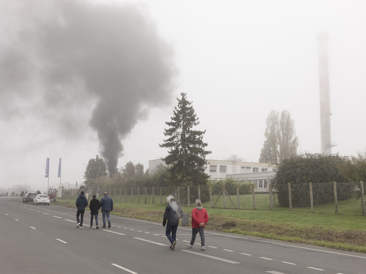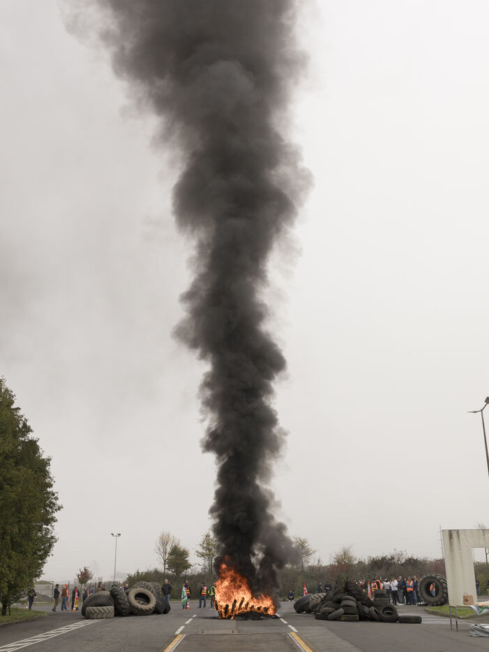 Cholet, Usine Michelin, le mardi 05 novembre 2024. Rassemblement des salariés devant l'usine du fabriquant de pneumatiques après l’annonce dans la matinée, par la direction du groupe, de la fermeture avant 2026 du site comptant 960 salariés.