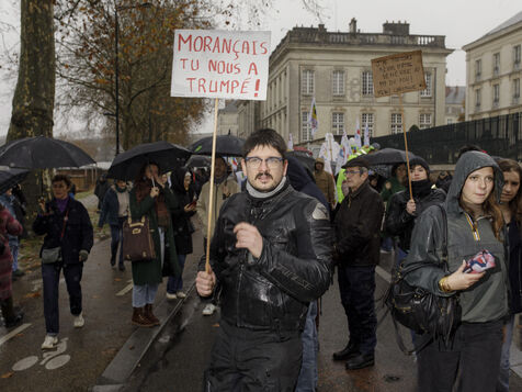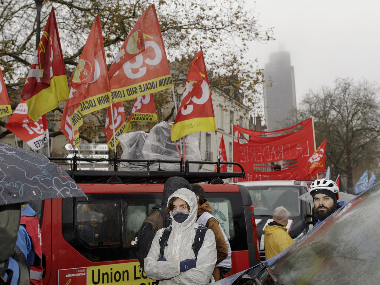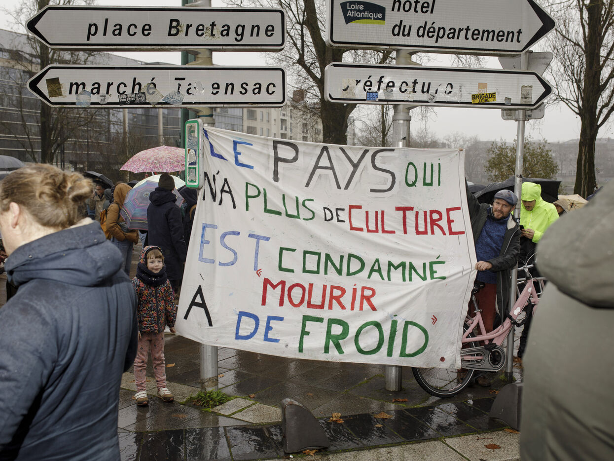 Nantes, le jeudi 05 décembre 2024. Près de 6.700 personnes étaient mobilisées à Nantes dans la cadre de la manifestation inter-syndicale de la fonction publique. Présents aussi en nombre, les professionnels de la culture, et du planning familial 44, visés par les baisses de budget envisagées pour 2025 par la présidente de région Pays de la Loire Christelle Morançais.