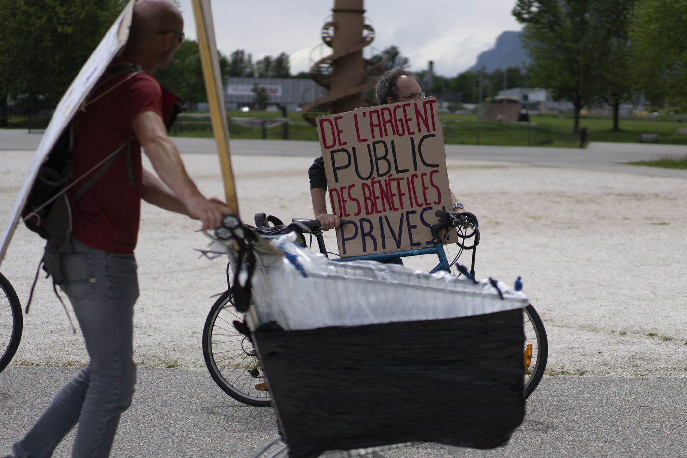 Des manifestants protestent contre l'organisation des jeux olympiques d'hiver 2030 dans les Alpes françaises à Albertville (Savoie, France).