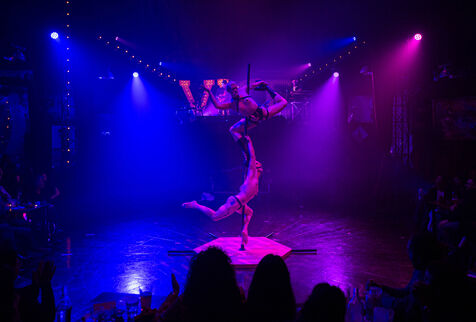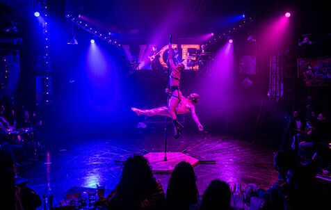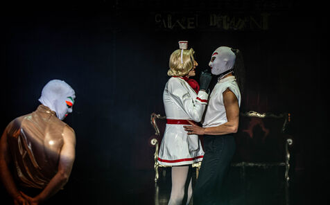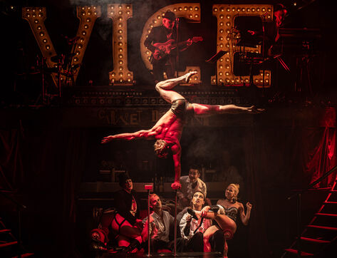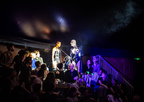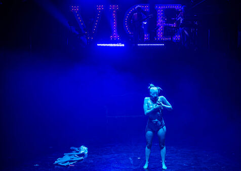 CABARET DÉCADENT, REVUE ÉLECTRIQUE N°777 VICE, Dans une ambiance de soufre et de sueur, hammam de boîte de nuit, vapeurs et fumée noire, les langues se délient, speakeasy, les corps se liquéfient, techno crade et saturée, une boule à facettes dans le ventre, reprendre son souffle, le vice est à vos portes. Pouvoir, luxure, argent, poisons d’une époque damnée. Violence, feu, métal bouillant, venin des entrailles d’une société finissante et vérolée, personnages de Marvel trop maquillés. Danse debout, cri à genou, aboiements de chiens, claquettes sur cannettes, podium central atomique, electro-vice, tacatacatacatac, politique enrayée, déclamations poétiques. Cirque vulgaire et cabaret du pauvre : le bal des perdus. Maudits, déviants, monstres et paillettes, fête brouillonne, messe vaudoo, non pas de messe, juste du vin, des jeux, je suis sensuel(le), torrida, une electric ladyland, insolente liberté électrique.