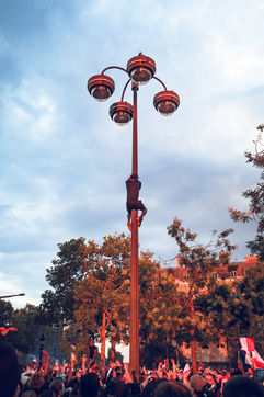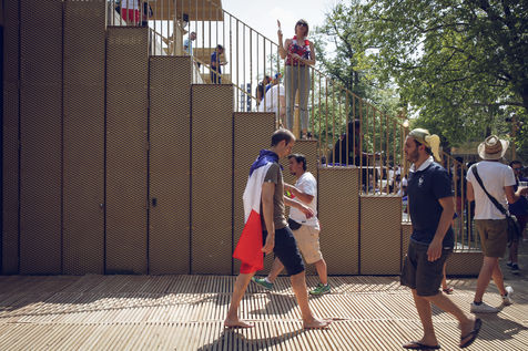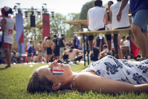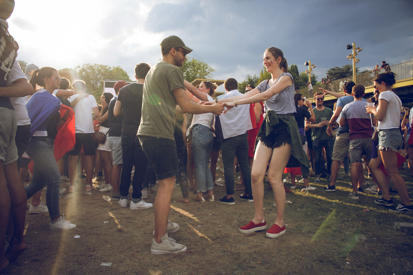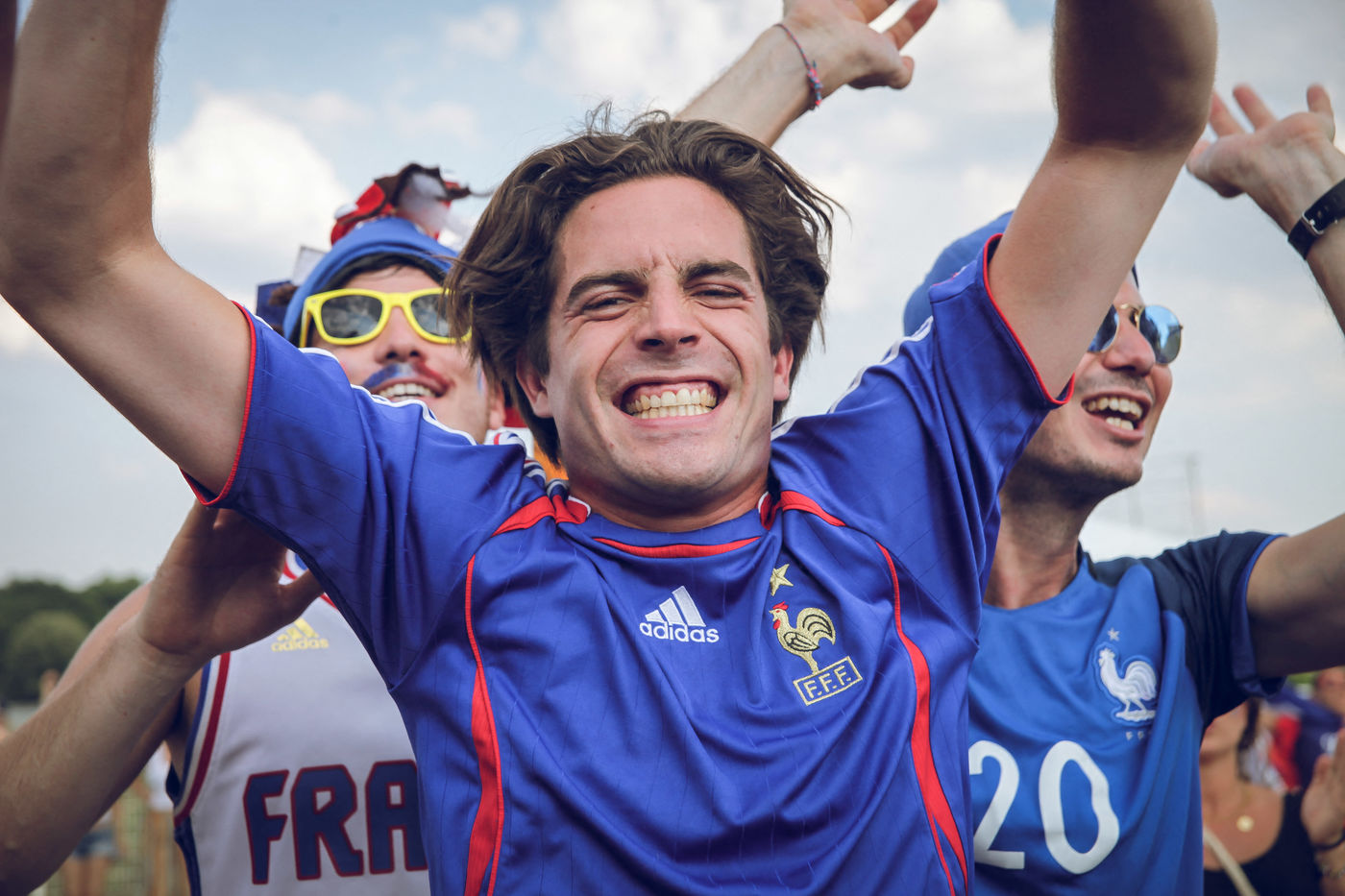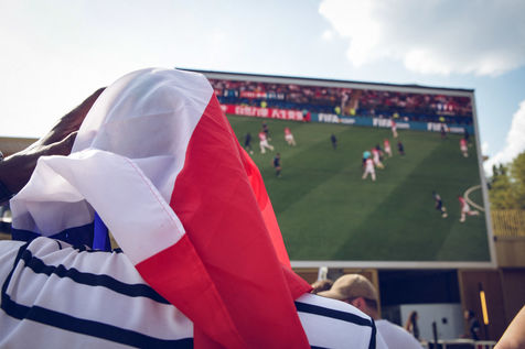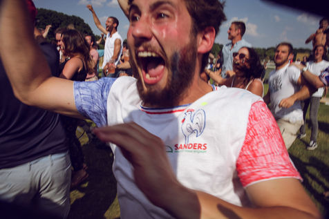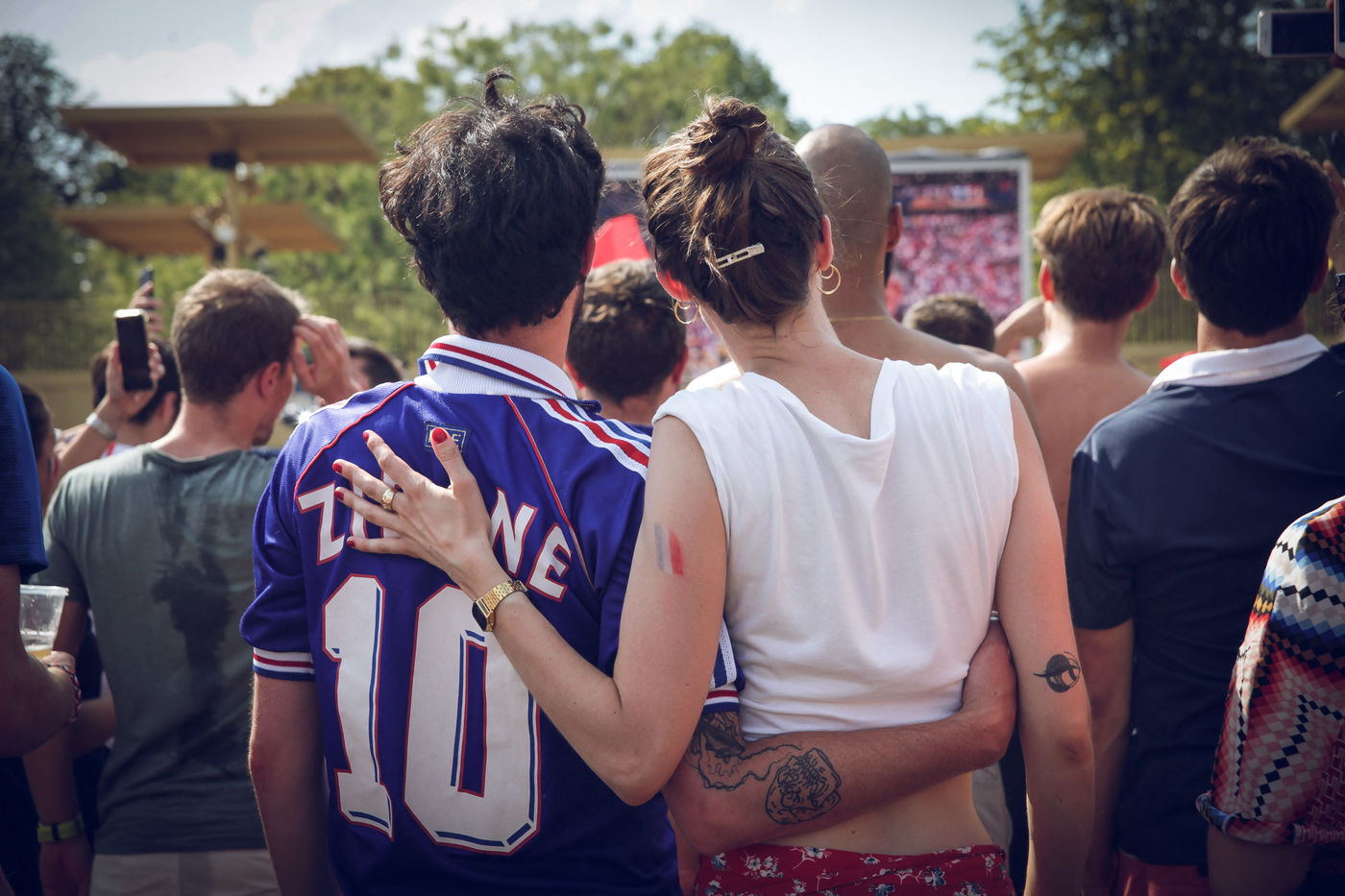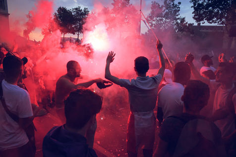 Paris, le 15 Juillet 2018. Des milliers de supporters sont rassemblés pour regarder la finale de la Coupe du Monde de football. La France remporte le trophée pour la deuxième fois de son histoire, ses supporters exultent. S'en suivent des scènes de liesses à Paris.