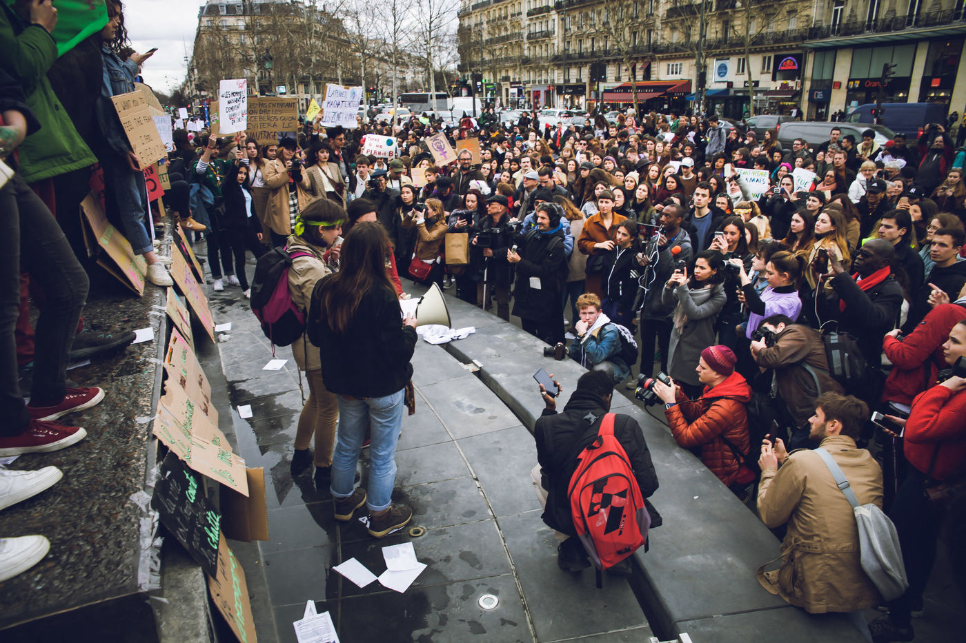Paris, le 8 mars 2019. Lors de la journée internationale des droits des femmes, des centaines de personnes ont manifesté contre le système patriarcal et pour obtenir plus d'égalité entre les femmes et les hommes.