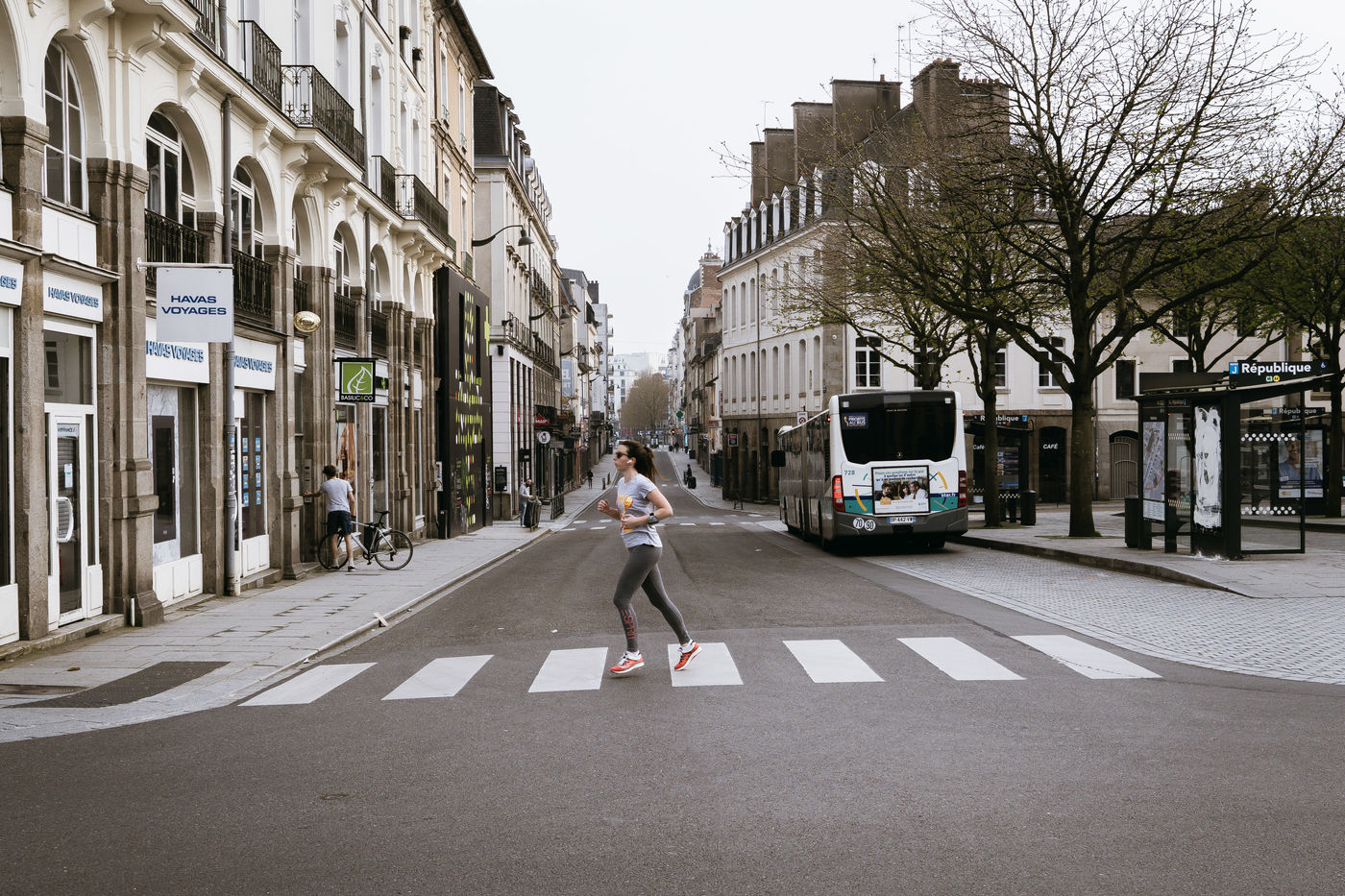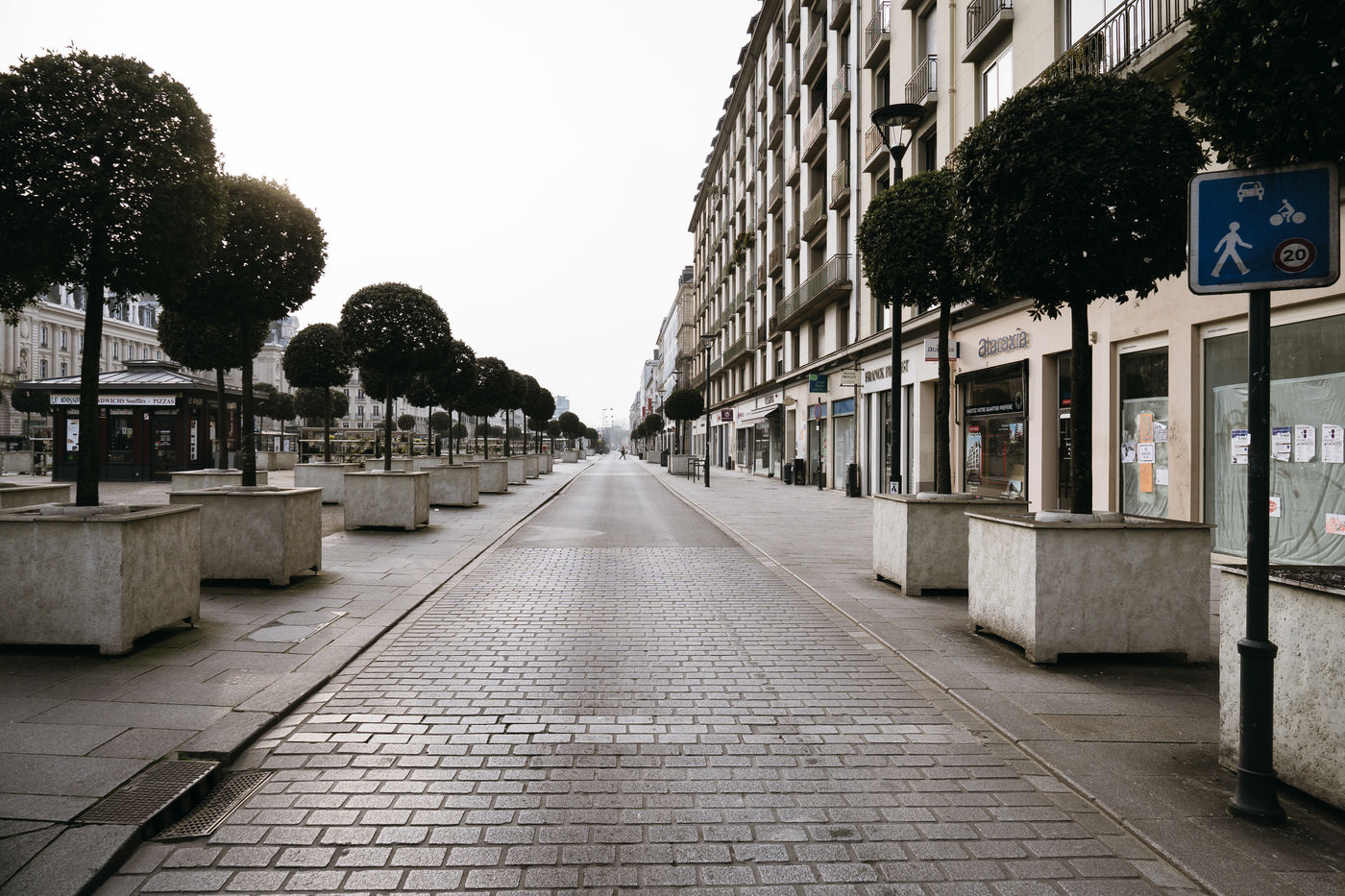 The streets of Rennes are empty on 20 March 2020, four days after the start of the containment declared by Emmanuel Macron throughout France to combat the spread of Covid-19.