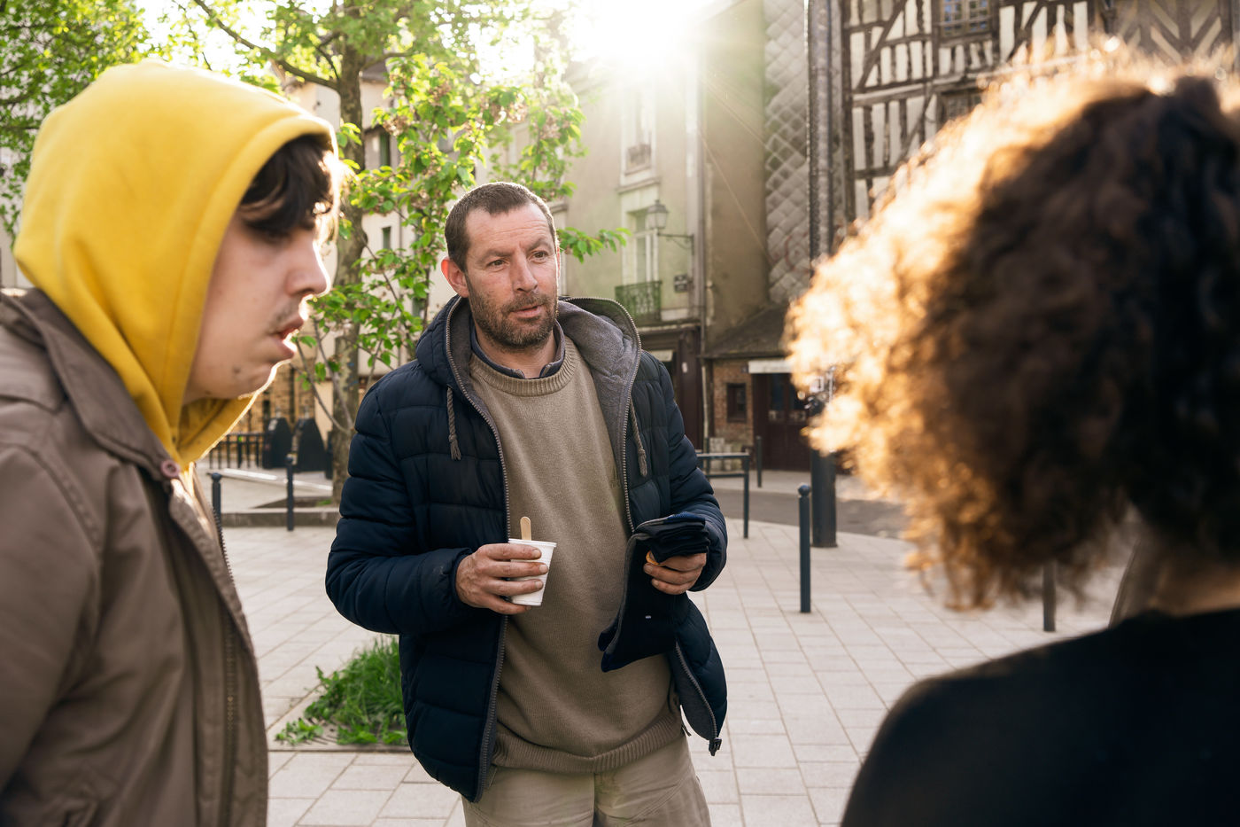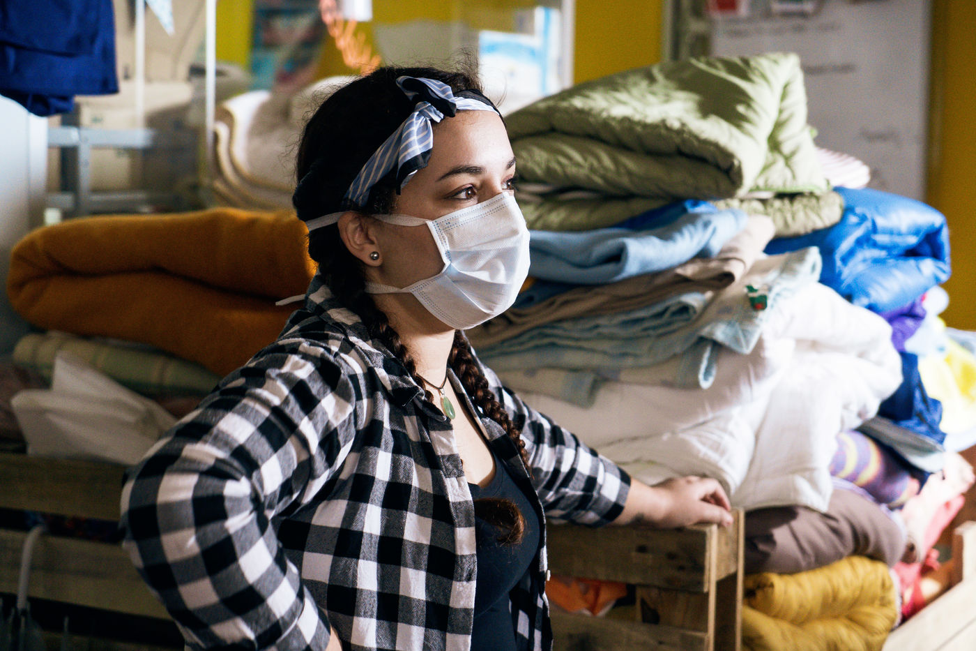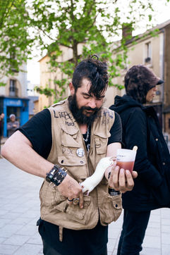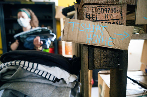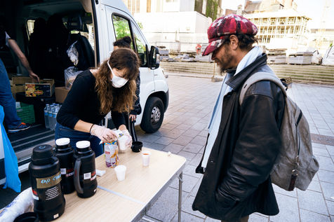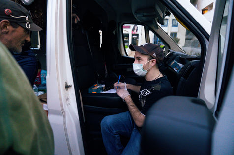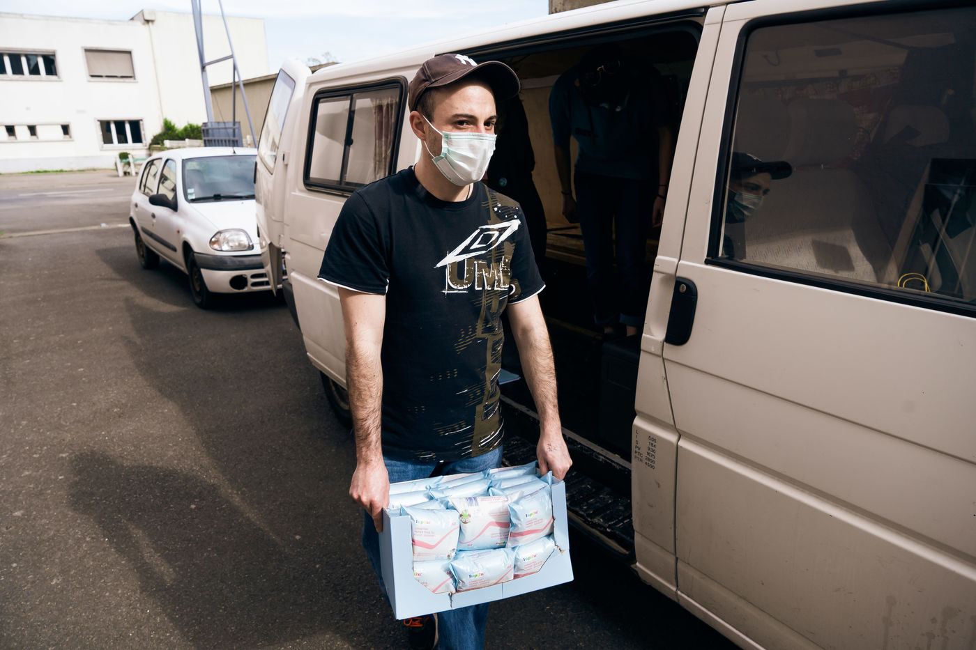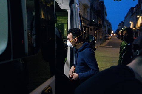 Since the beginning of the confinement on 17 March 2020, the Rennes branch of the Utopia 56 association has been touring the city of Rennes three times a week to bring food aid, hygiene products and company to those living on the streets. Series produced on 16 April 2020, in Rennes.