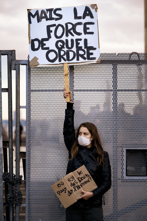 Several thousand people demonstrated on the human rights forecourt at the Trocadéro in Paris on Saturday, November 21, 2020 to protest against the so-called "Global Security" bill.