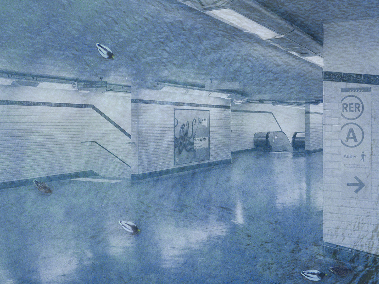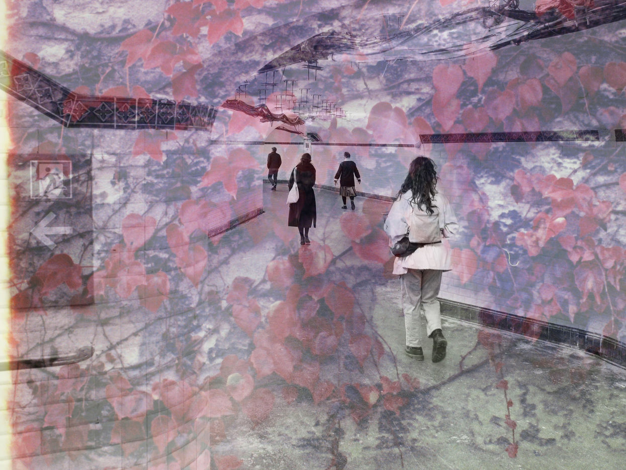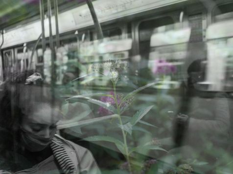 Valentino Belloni, photojournaliste, équipé d'un boîtier numérique, partage son regard sur les ambiances de vie dans ce moyen de transport. Joséphine Bichareil artiste photographe, dont l'un des objets de travail est le monde végétal, saisit avec son argentique la diversité de cet univers dans les parcs et jardins parisiens. Entre illusion et réalité, numérique et organique, ils constituent une série de doubles expositions.