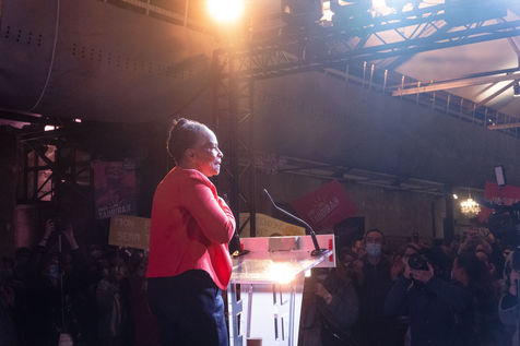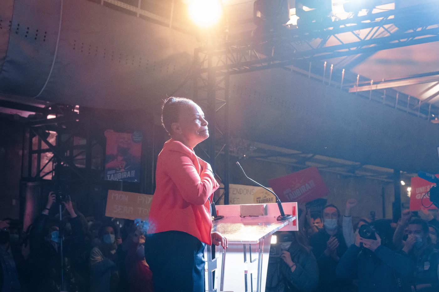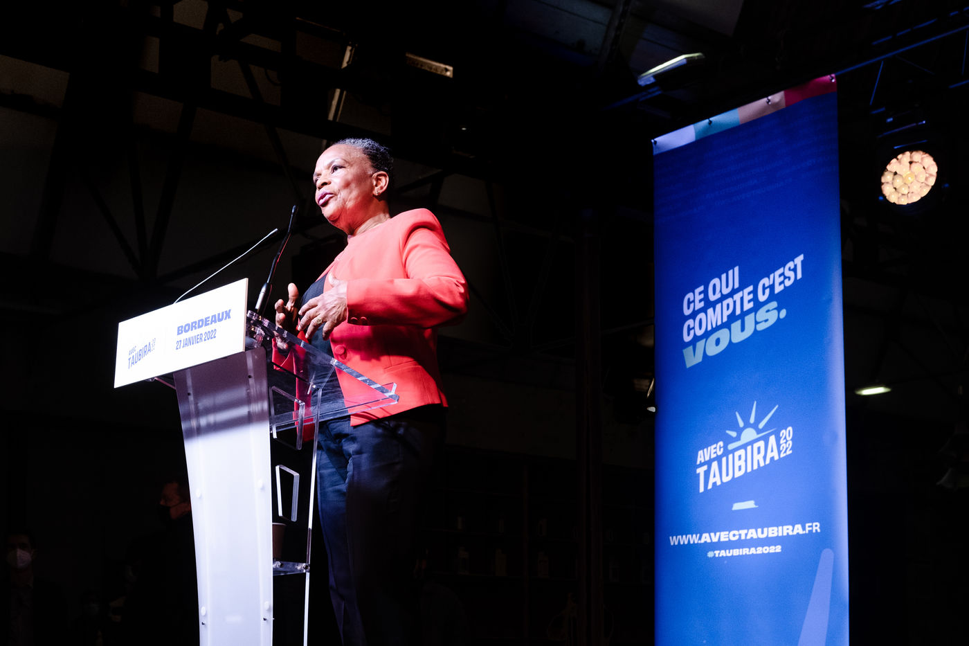 Christiane Taubira à Bordeaux le 27 Janvier 2022 lors d'un meeting organisé dans le cadre de la présidentielle 2022 en France.