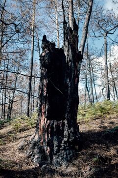 Après les incendies de cet été en Gironde, les stigmates du feu sont encore bien visibles. Lentement, la nature repend ses droits. Le gris poussiéreux de la terre est désormais colorié du vert des fougères. Un décor parfois lunaire et triste, mais teinté d'un espoir printanier.