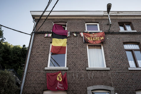 Juin 2018, Liège, Belgique. La coupe du monde 2018 de Football bat son plein et l'équipe des Diables Rouges réalise un excellent parcours. Les supporters et fans de l'équipe nationale belge arborent de toutes les manières possibles leur soutien à l'équipe.