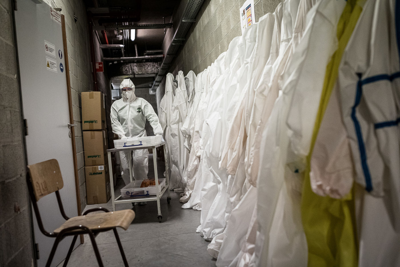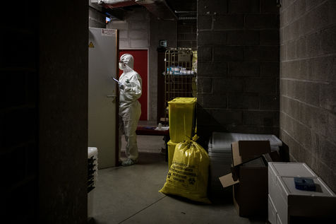 Ici, mesures extrêmement strictes pour y travailler. Certains volontaires portent même des combinaisons avec respirateurs.