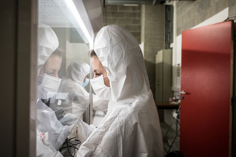 Il fallait ensuite pouvoir assurer la suite de la procédure de testing PCR, c'est donc au Professeur Catherine Sadzot qu'il a été demandé de former une équipe de chercheurs capables de travailler sur les échantillons reçus. Tous sur base volontaire, c'est ainsi que Madame Sadzot a oeuvré pendant des mois, dans l'ombre. Les laboratoires ont effectivement du être installés dans les caves de la tour GIGA, sur le site du CHU du Sart-Tilman.