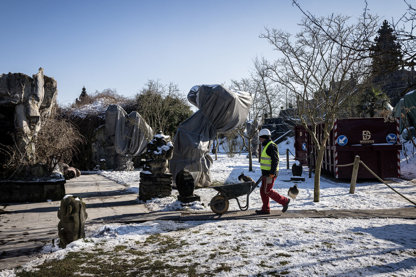 Brugelette, Belgium. February 11, 2021. Preparations are well underway for the reopening of the Pairi Daiza Animal Park on Saturday, February 13, after it has been closed for several months due to the Covid19 pandemic.