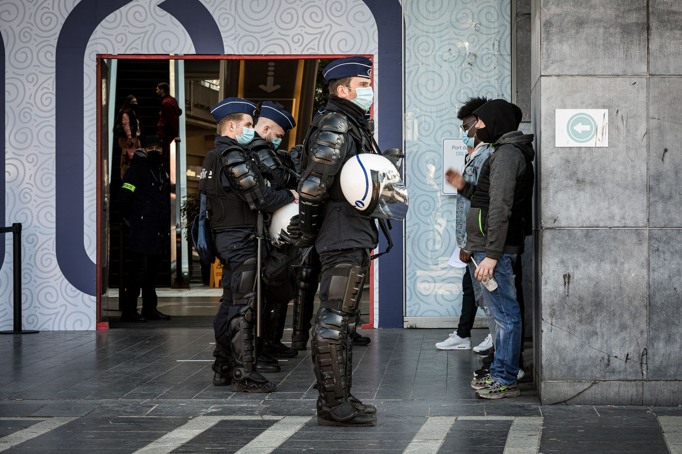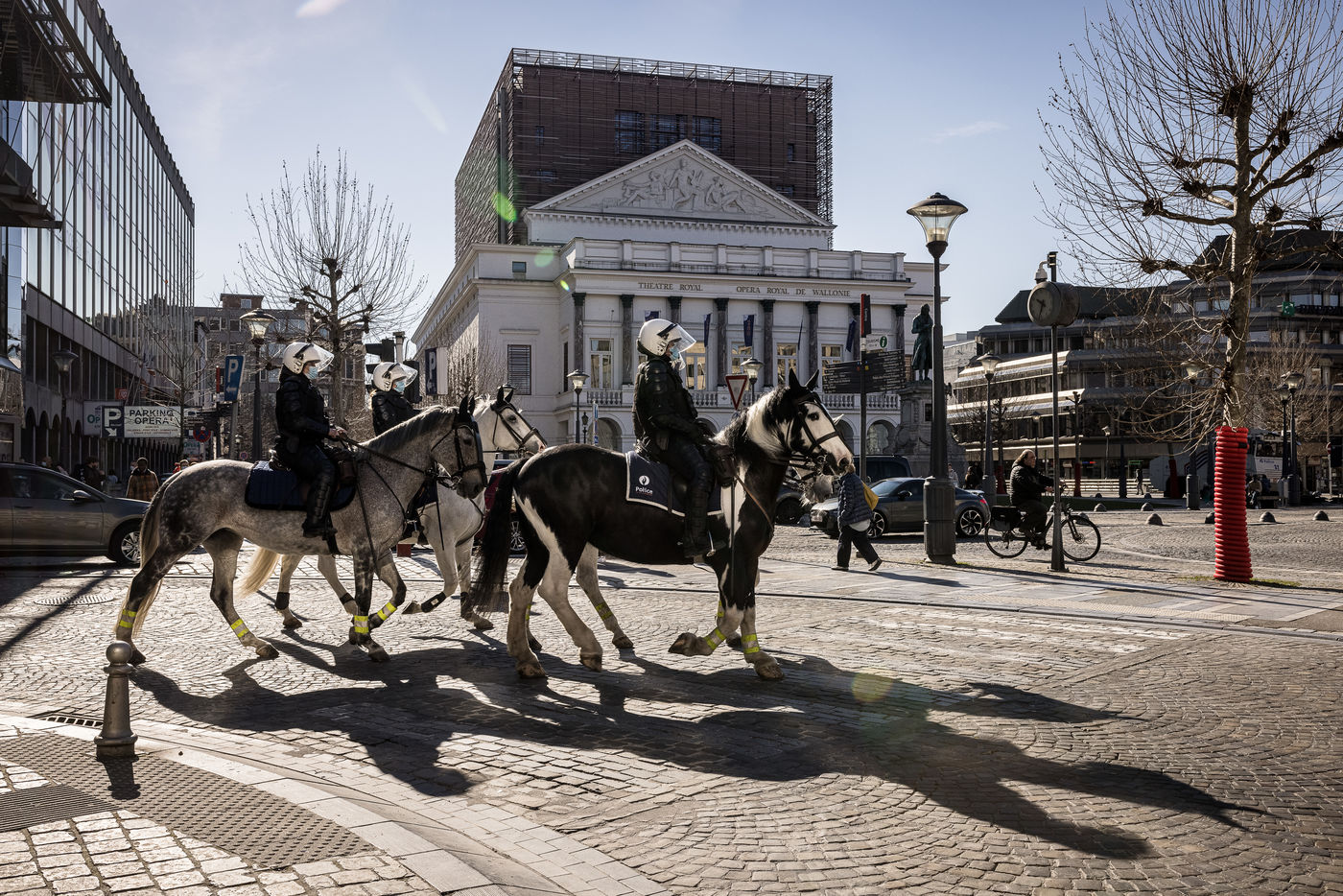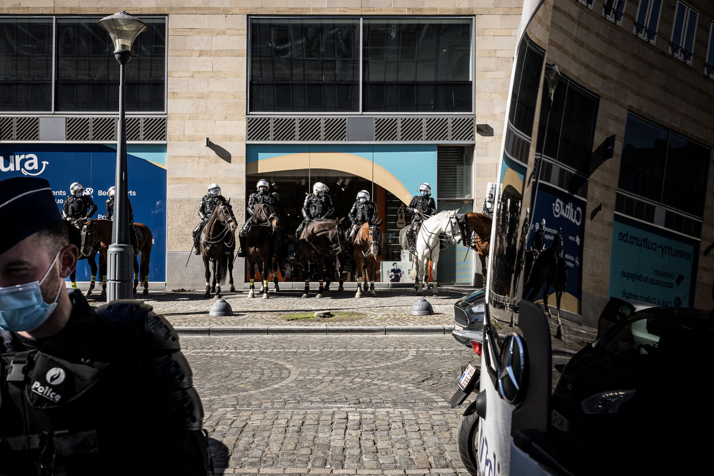 Liege, Belgium. March 20th, 2021. Following the violent riots of March 13 on the Place Saint-Lambert, the Police is deployed in large numbers in the city center of Liege in order to dissuade the rioters from trying to reproduce last week's scenario.