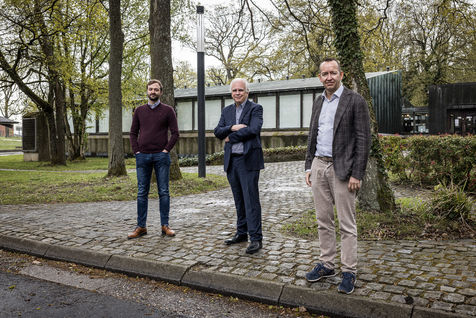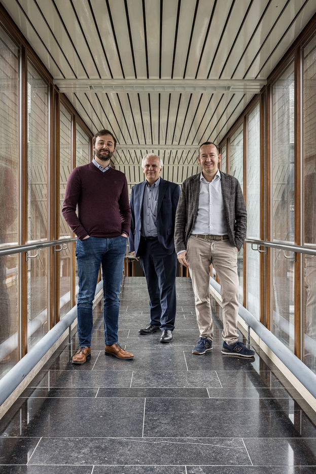 Angleur, Belgium. 2021-05-04. Portrait of Damien Ernst, Quentin Gemine and Charles Delhaye from Blacklight Analytics at ULiege.