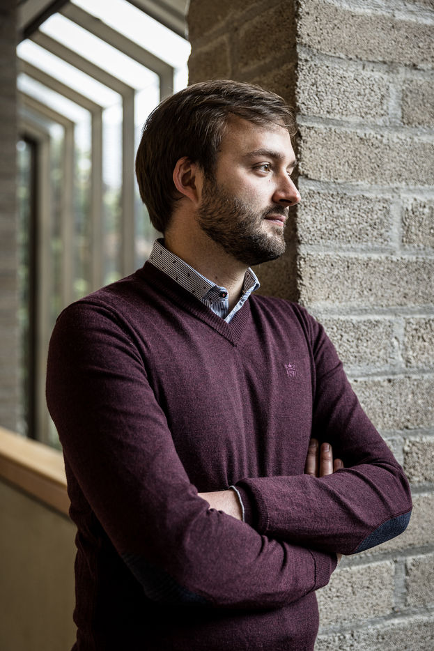 Angleur, Belgique. 2021-05-04. Portrait de Damien Ernst, Quentin Gemine et Charles Delhaye de Blacklight Analytics a l ULiege.