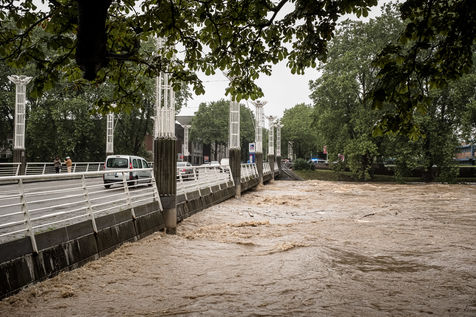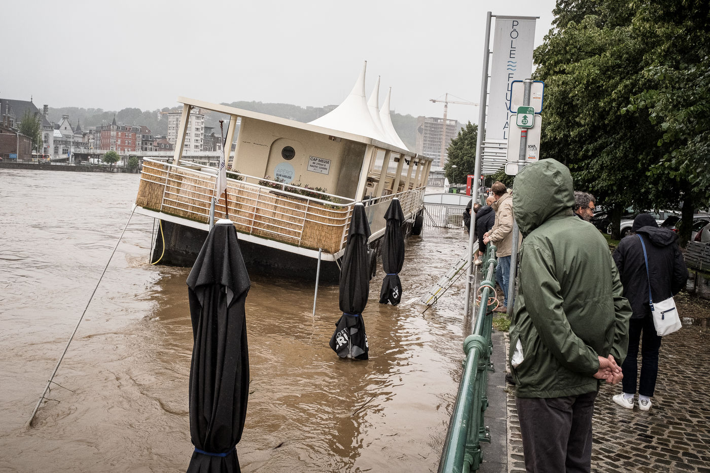 Announced since July 14 in the evening, the major floods reached the city of Liege. The Meuse threatened to flood the city center. The governor of the Province asked the inhabitants to evacuate the city if they could or to take refuge in the upper floors of the houses. The communes of Chênée and Angleur were also heavily affected by the flash floods of the Ourthe and the Vesdre.
