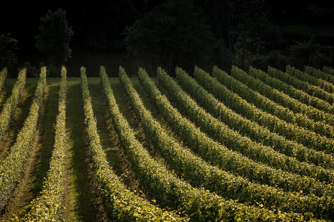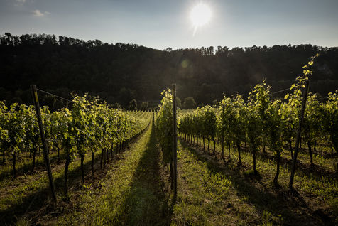 Yvoir, Belgium. 2021-07-22. Vineyard of Bon Baron not far from Dinant, shortly after the storms.