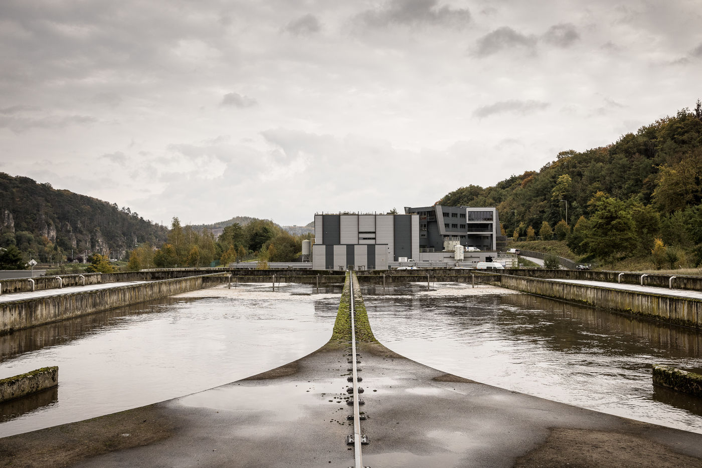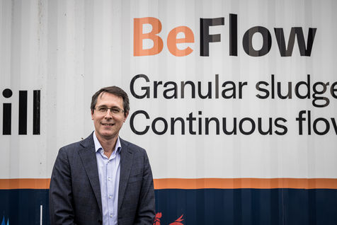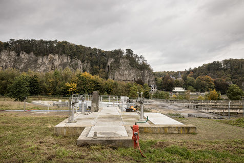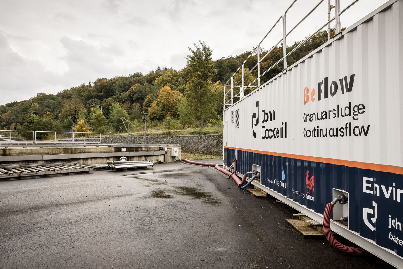 Namur, Belgium. 2021-10-20. Experimental site of BeFlow near the wastewater treatment plant on the Meuse river.