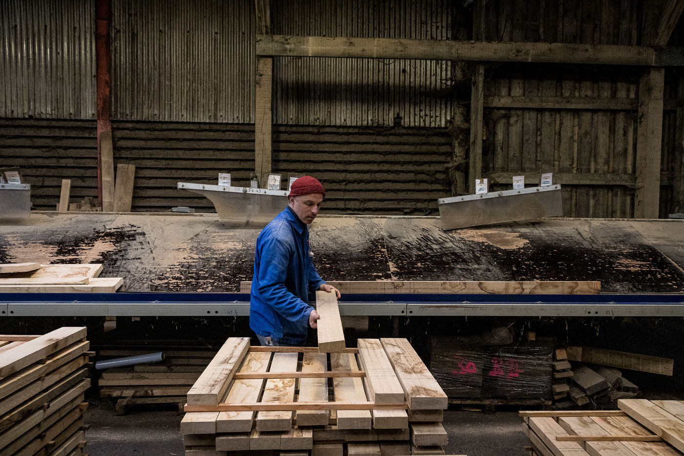 Morville, Belgium. 2021-10-21. The Belgian wood market is in full crisis, the Chinese ogre has come to upset the European markets by coming to buy the majority of the raw wood stocks largely above the market prices. It also prevents local companies to get raw material. As it is the case here, at the Vica-Bois sawmill where the company is struggling to provide work for its 17 employees. Lack of wood as a consequence.