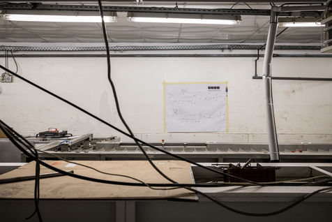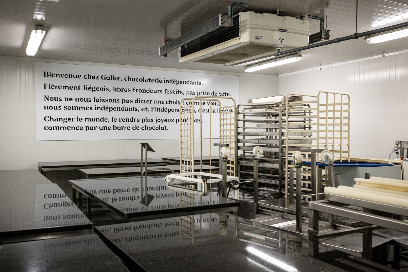 Vaux-sous-Chevremont, Belgique. 2021-12-14. Cinq mois apres les inondations qui ont touche la region liegeoise, la chocolaterie Galler reprend doucement son activite. Il reste cependant beaucoup a faire sur place pour retrouver la capacite initiale.