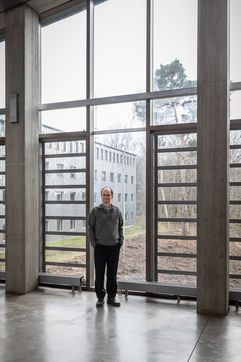 Liege, Belgium. 2021-12-23. Portrait of Jacques Teller from the ULiege, expert in land use planning and urbanization, on the site of the University of Liege at Sart-Tilman.