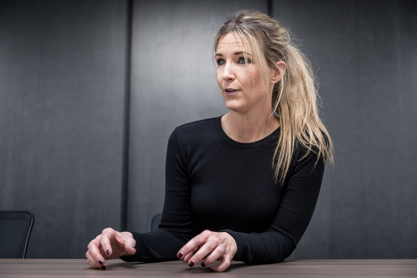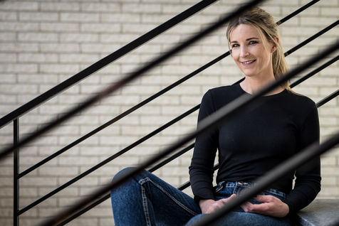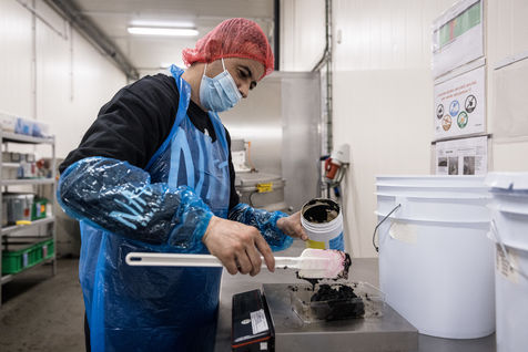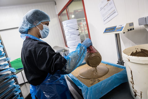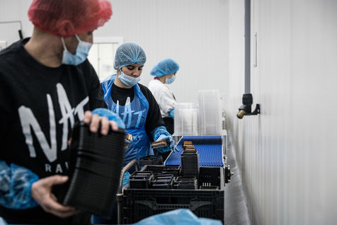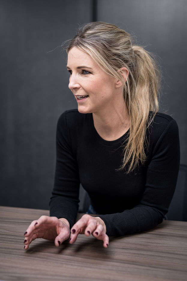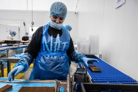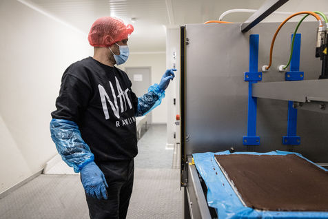 Oupeye, Belgium. 2022-03-22. Portrait of Nathalie D Harveng, CEO of Nats Rawline, a company specializing in vegan and gluten-free pastries. Her company now exports internationally with impressive growth.